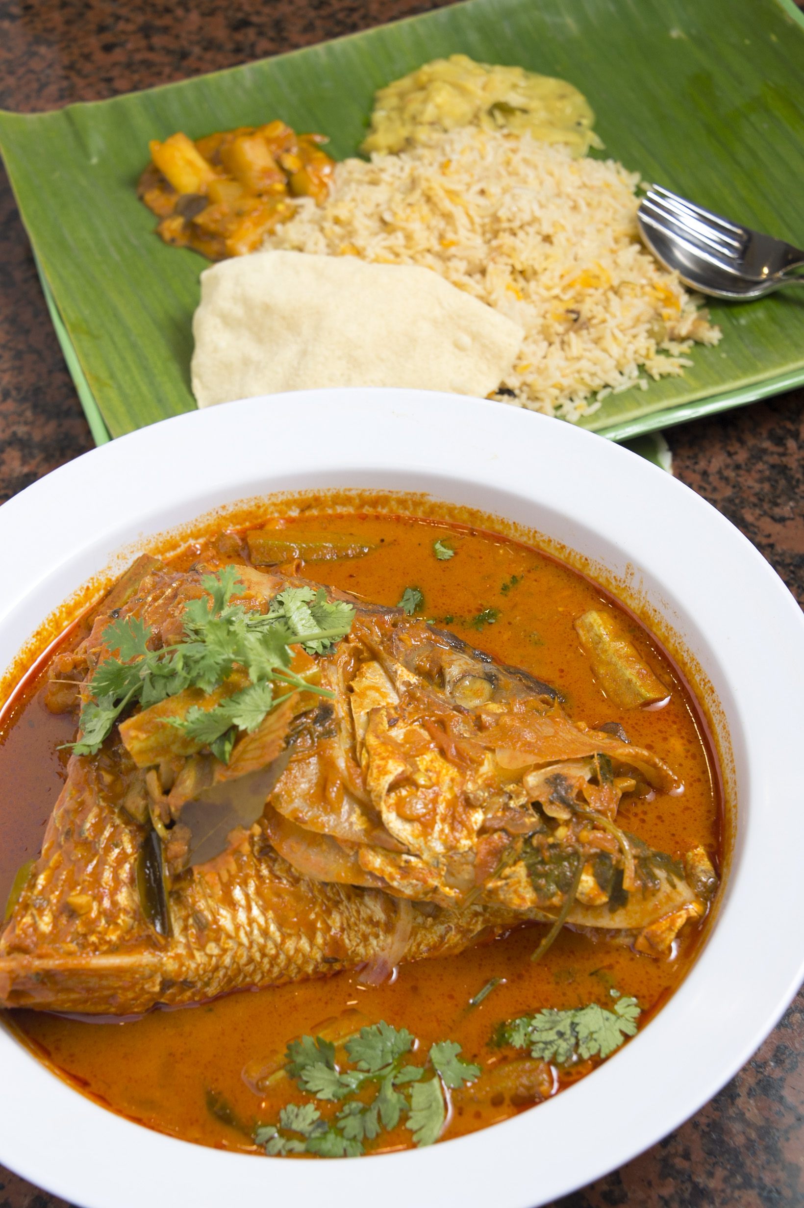 この料理の考案者といわれる店主が営む「ムトゥース・カリー」や、観光客にも地元の人々にも支持される「バナナリーフ・アポロ」といった南インド料理店で試してみましょう。南インド特有のバナナの葉っぱの上にご飯やカレーを盛るスタイルで味わえます。