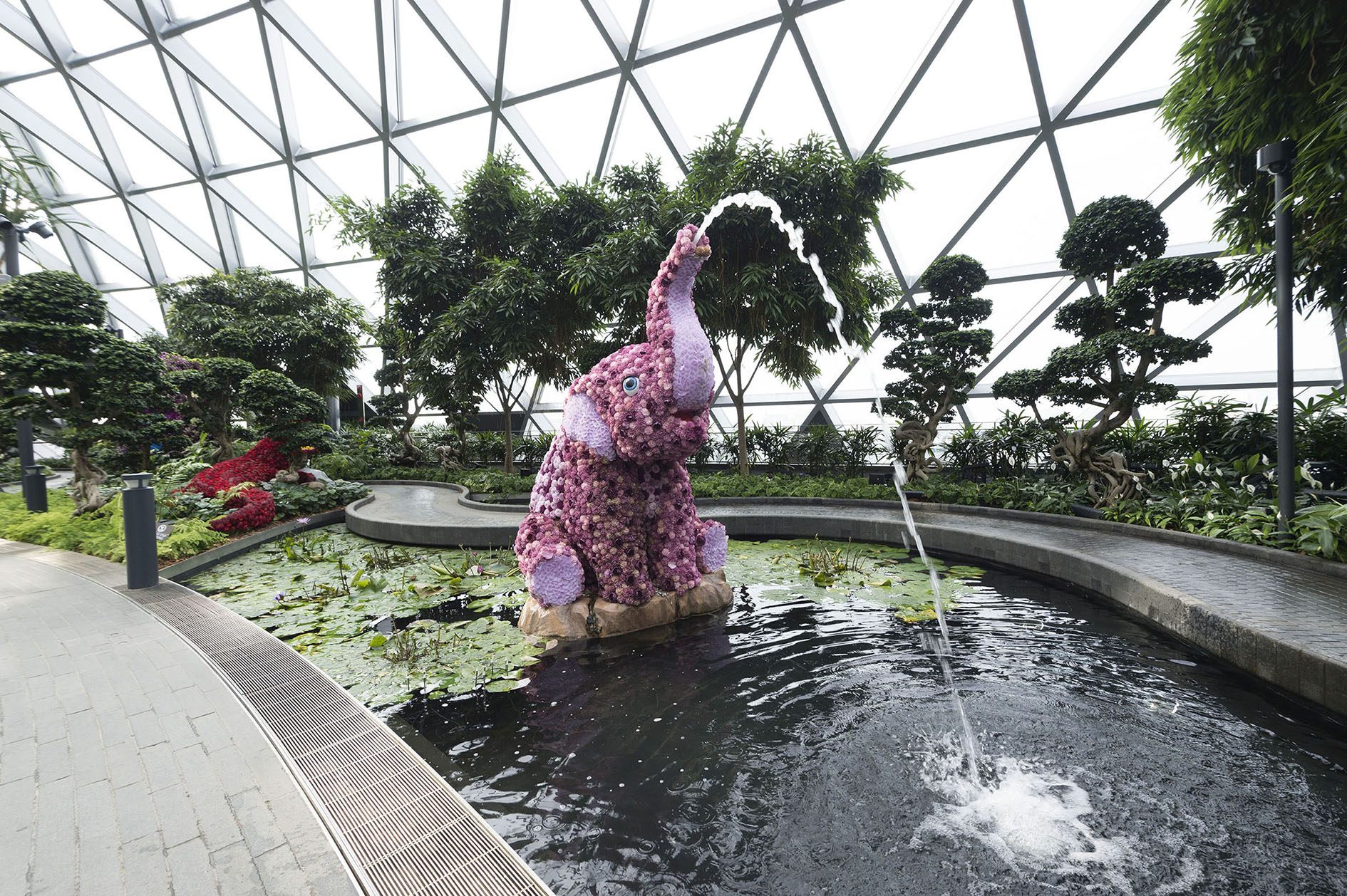 ジュエルの最上階(Level 5)にある1万4000㎡を有するキャノピーパークは、9つのアトラクションと庭園で構成されたレクリエーションパーク。動物をかたどったトピアリーが並ぶ散歩道「トピアリーウォーク」と世界中の季節の花々が集められた「ペタルガーデン」は、写真スポットがたくさんあります! 芝生のくぼみからミストがランダムに吹き出し、雲の中にいるかのような感覚が味わえる遊び場「フォギーボウル」や、4通りの滑り方ができる滑り台「ディスカバリースライド」からは歓声が響きます。これらはパークの入場料で楽しめます。