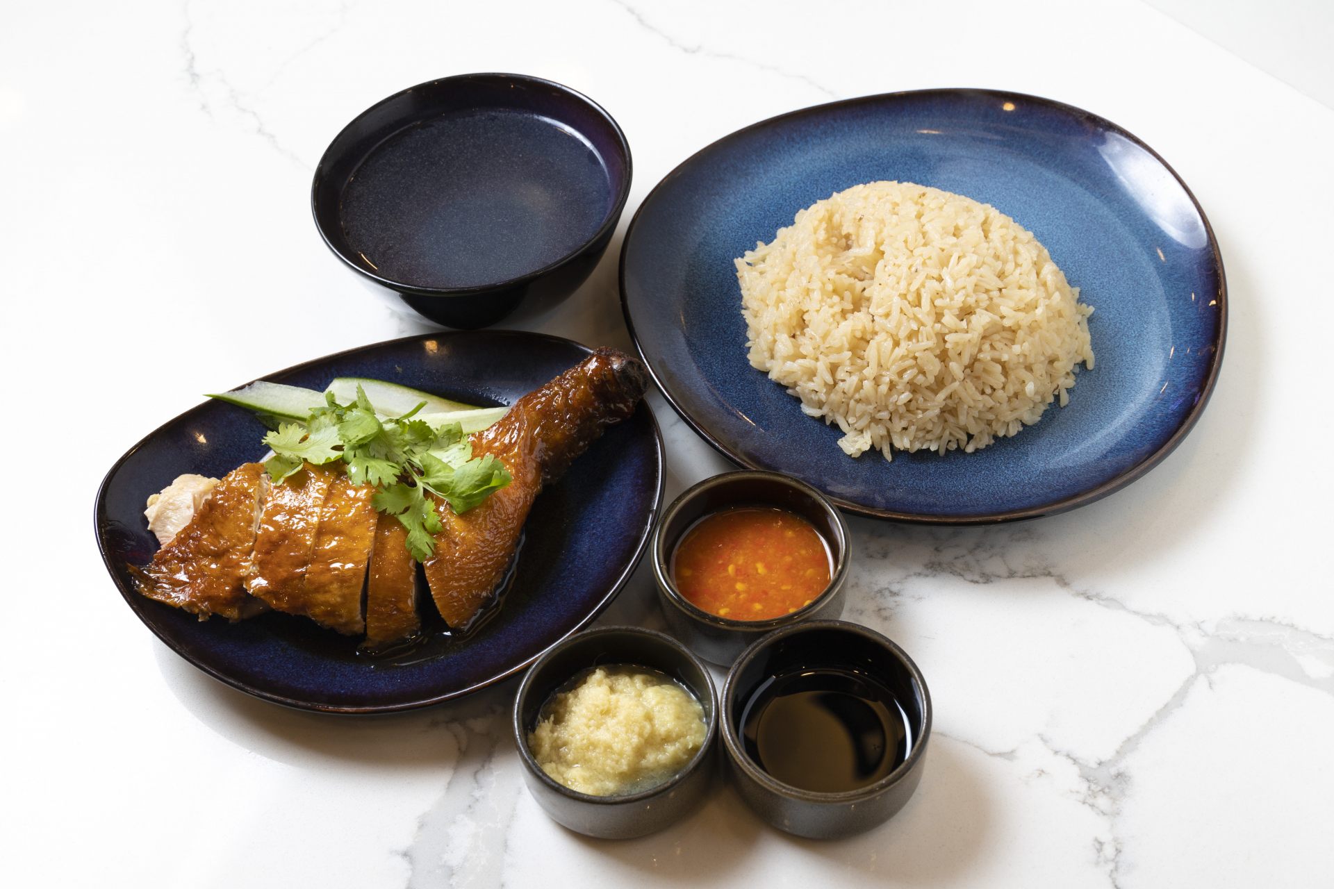 そして「スープ・レストラン」の看板料理のジンジャーチキンにも注目。この店でしか味わえない名物料理です。しっとりとした蒸し鶏をショウガとニンニク、ゴマ油を調合したたれにつけてパクリ。レタスに巻いて食べてもおいしく、ビールにも合います。