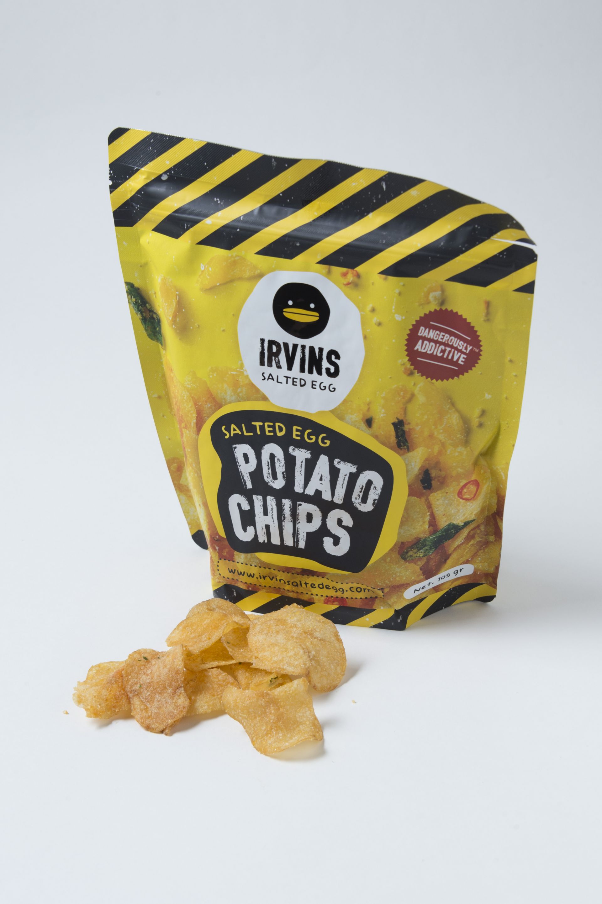 シンガポールで爆発的なブームを巻き起こし、アジア各地に広まったアービンズのソルテッドエッグポテトチップス。もちろん、ジュエルで買えます!