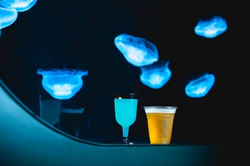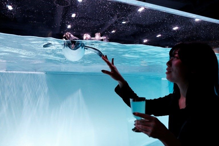 バックヤードを公開したり、デジタルアートで没入感を提供したり、ここにしかない特長はたくさんありますが、なんといっても北海道の食材を使ったパンやアルコールが館内で楽しめるのが魅力。かわいいペンギンや美しいクラゲとのカフェタイムが実現しちゃうんです。