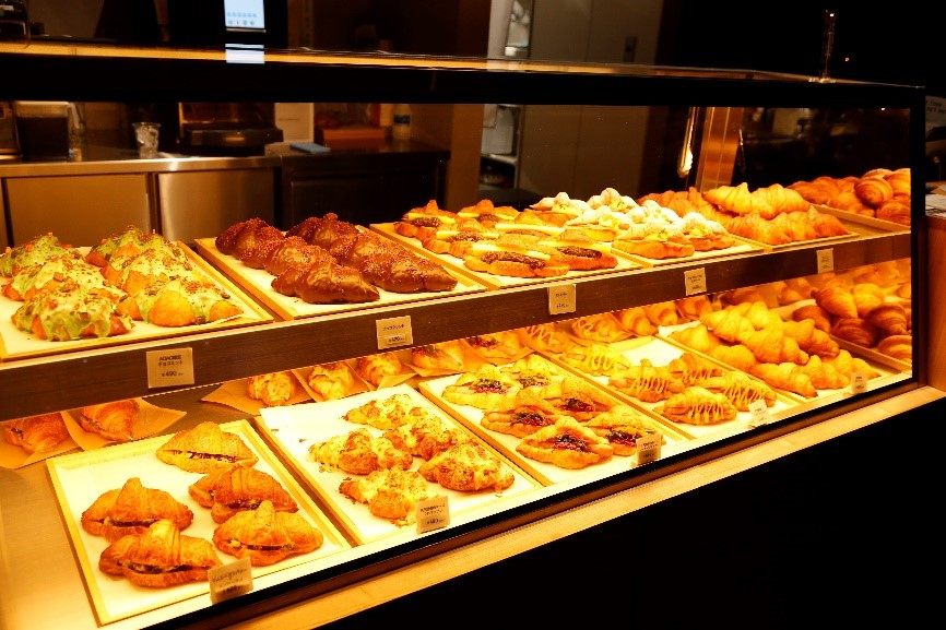 札幌で人気のベーカリー「シロクマベーカリー」とコラボした、パンとお酒が楽しめるパンバルが館内で営業しており、道産小麦のクロワッサンを中心に、AOAOスパークリングワイン790円やビールなどが楽しめます。