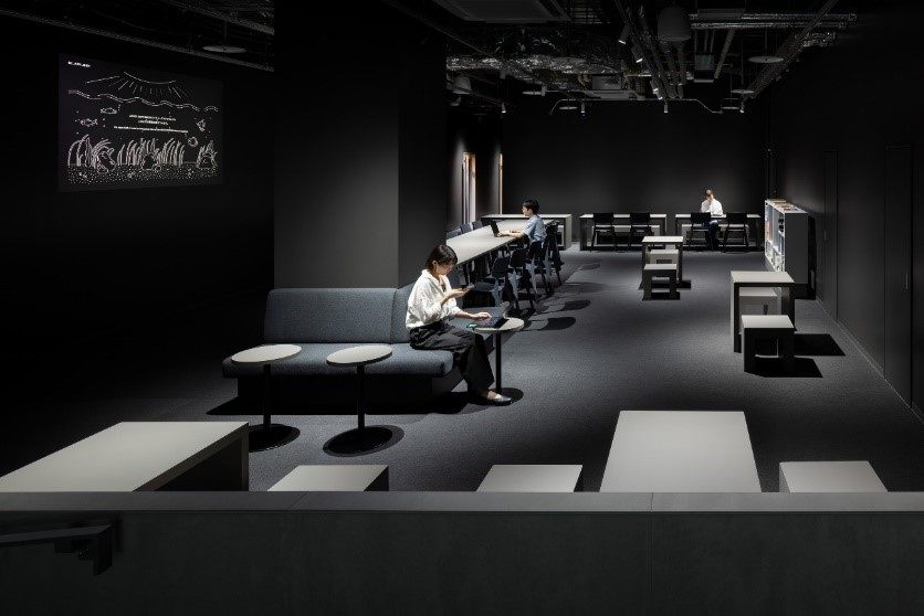 館内のいたる場所にいすが置いてあり、電源・Wi-Fiを完備したワークスペースまで併設! 順路は決まっていないので、自分のペースで心ゆくまで生き物を観察できるのはもちろん、水槽前で仕事をしたり、勉強をしたり、アルコール片手にゆっくりくつろいだり……さまざまな過ごし方ができます。