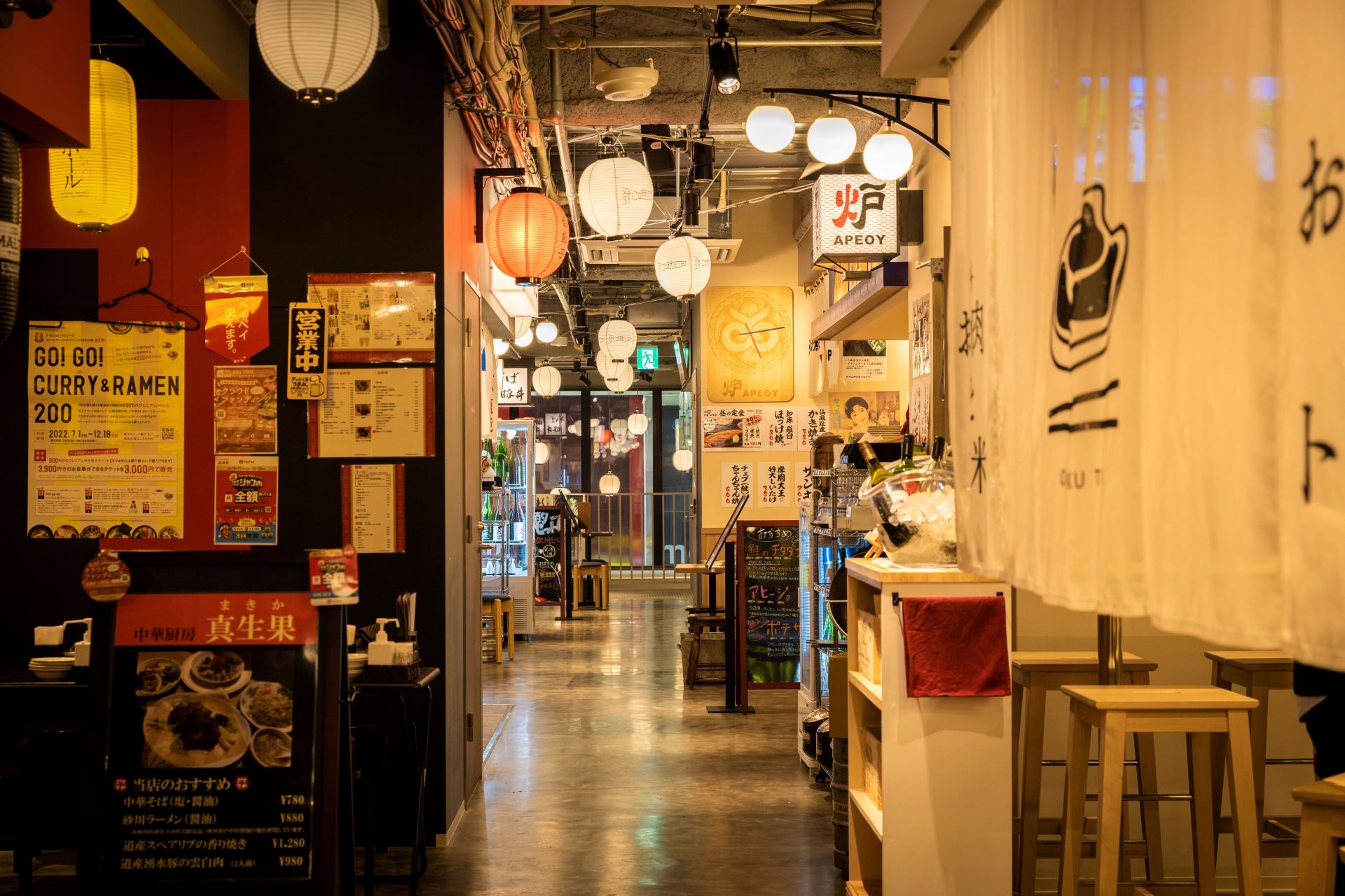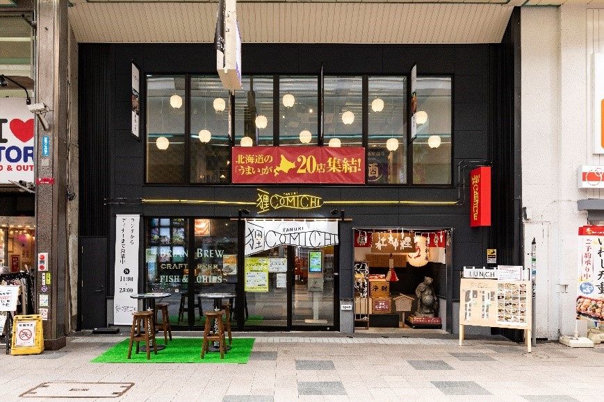 狸小路2丁目に「北海道食文化発信横丁」「北海道の食べ歩き市場」というコンセプトのもと2022年8月にオープンした「狸COMICHI」も注目スポット。2階建ての建物内にはジンギスカン店や鮮魚店など、地元食材を使った飲食店やマルシェなど20店舗が集結しています。