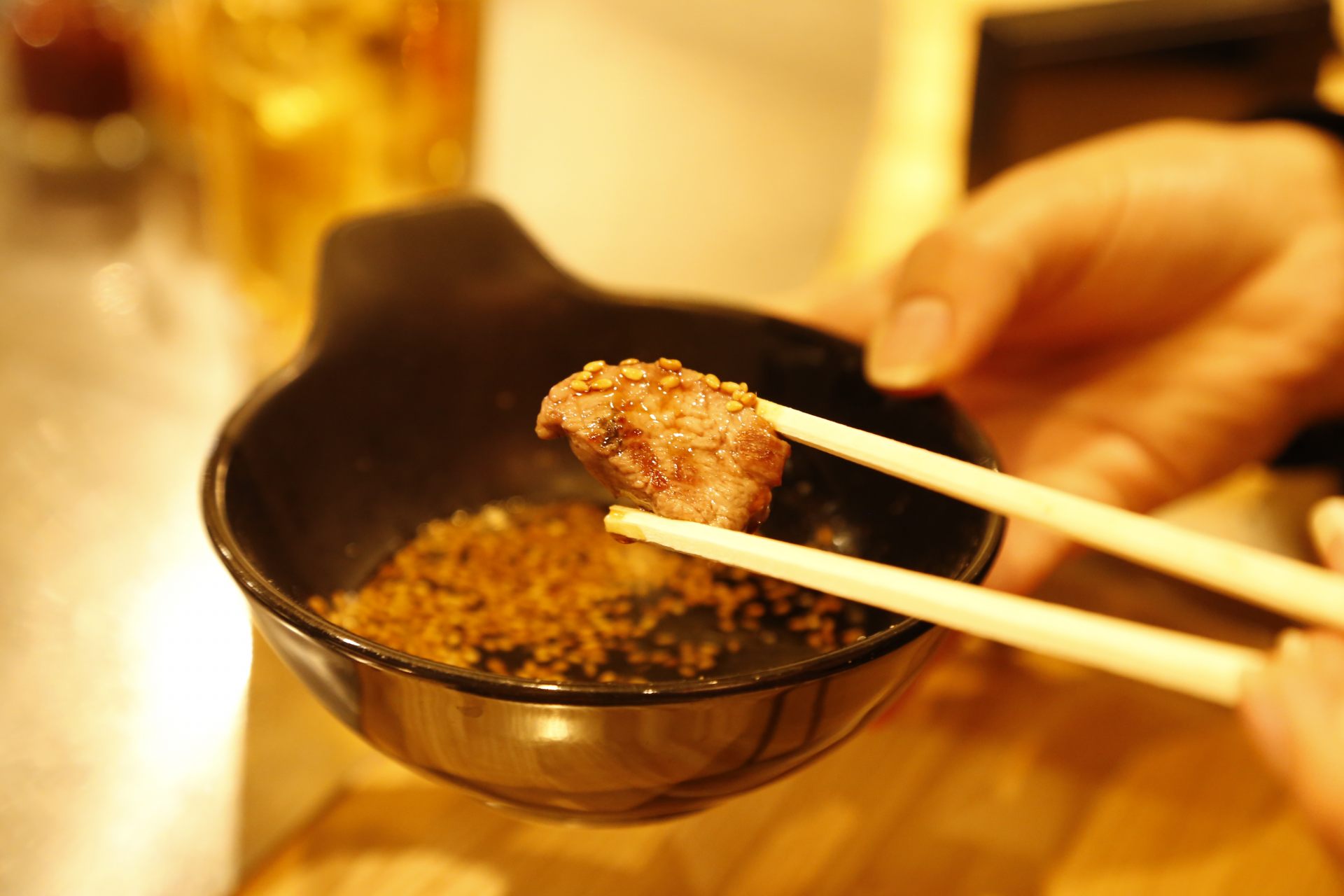 まずはすすきのの名物ともいわれるジンギスカンのお店「だるま」へ。1954 年に創業し、本店のほか、すすきのに5店舗を構える老舗店です。一般的にジンギスカンで使用する肉は羊肉で、生後 1 年未満のラム肉か、生後 2 年以上のマトン肉を扱う店か、店により異なりますが、ここは濃厚なうま味が楽しめるマトン肉を使用。マトン肉は手切りでていねいに処理されており、臭みを感じません。