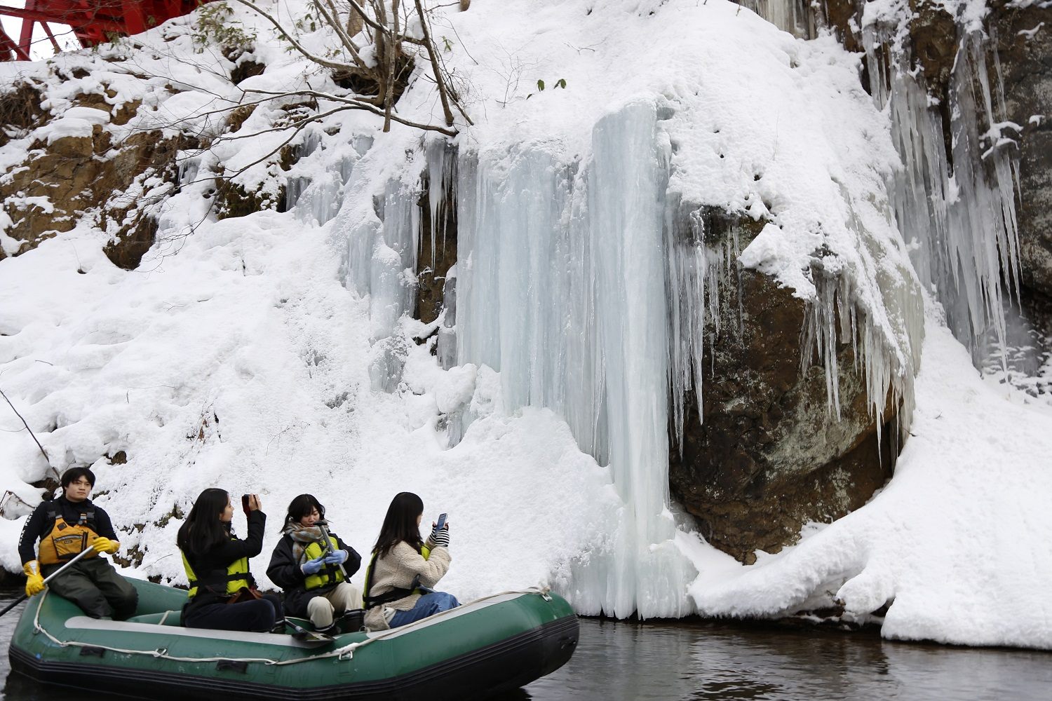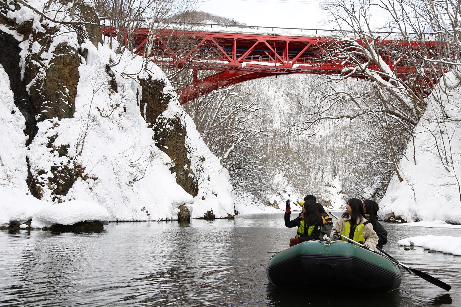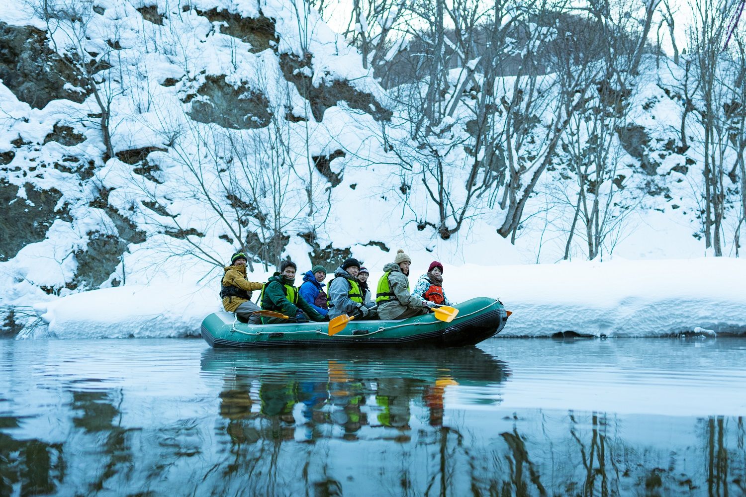 ハードなイメージのあるラフティングですが、ここ定山渓での雪見ラフティングは 3 歳の子供から参加できるほどゆったりのんびり。シーンと静まり返った環境で、氷瀑などの雪景色を楽しんだり、野生動物を眺めたり、冬ならではの魅力でいっぱいです。