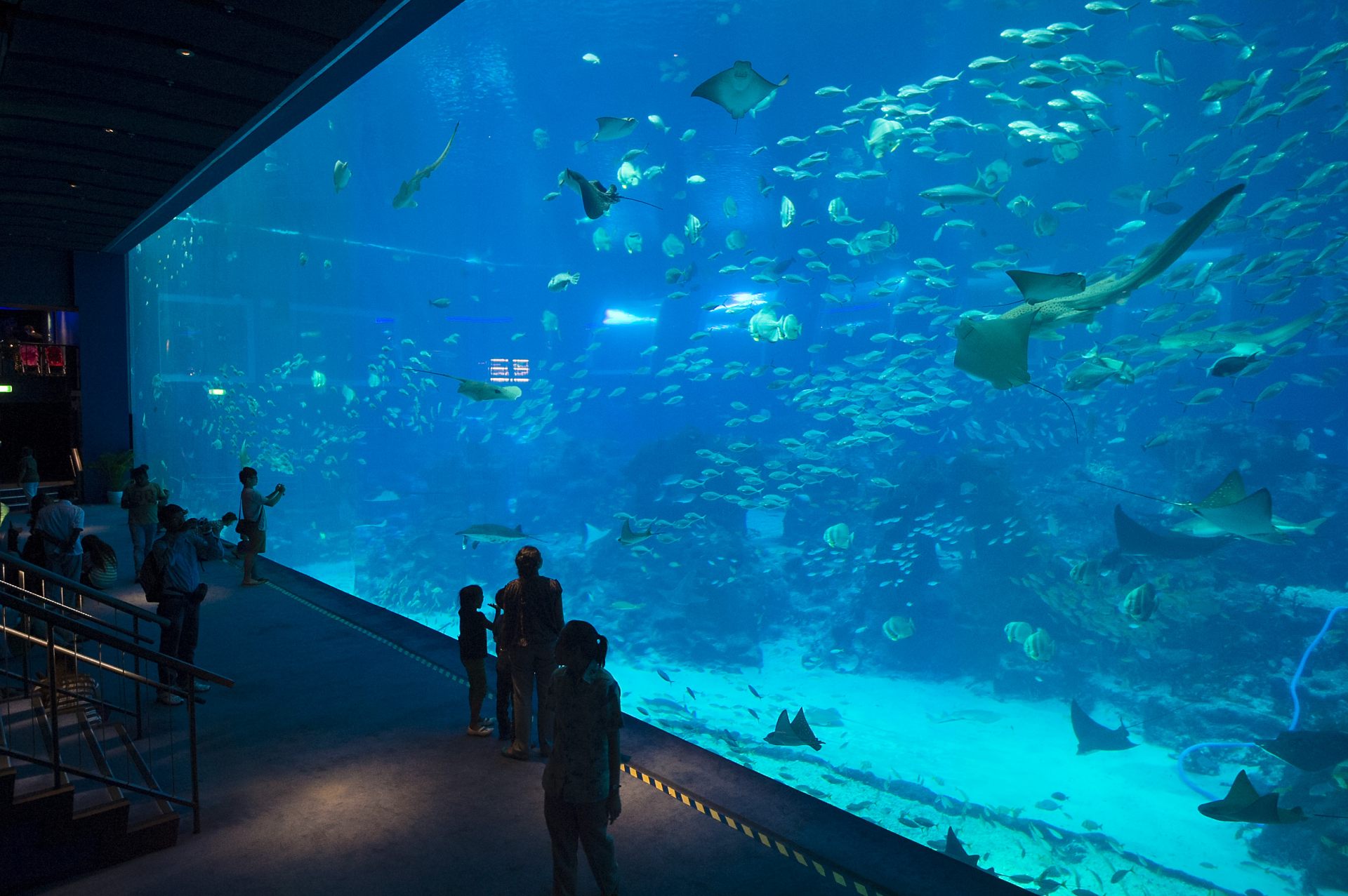 館内のハイライトの展示は、オープン・オーシャンの巨大水槽。幅36m、高さ8.3mのビューイングパネル越しに、マンタやエイ、サメをはじめ4万を超える海洋生物が悠々と泳ぐ姿は圧巻です! 水槽を眺めながら食事ができる「オーシャンレストラン」やホテルもあり、水族館ファンにはたまりません。