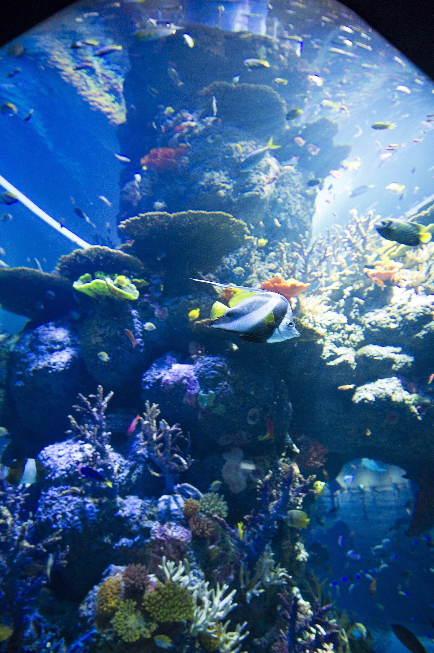 ダイバーによる餌やりタイム(毎日10:30)が設けられている難破船の水槽やフォトジェニックなクラゲの水槽、さまざまな種類のサメを集めたトンネル水槽など、飽きさせない工夫満載です。舞台裏のラボで、孵化したばかりのクラゲの飼育の様子を見学できる「ビハインド・ザ・シーンズ:アクアリスト・ラボ」(有料)という体験プログラムもあります。
