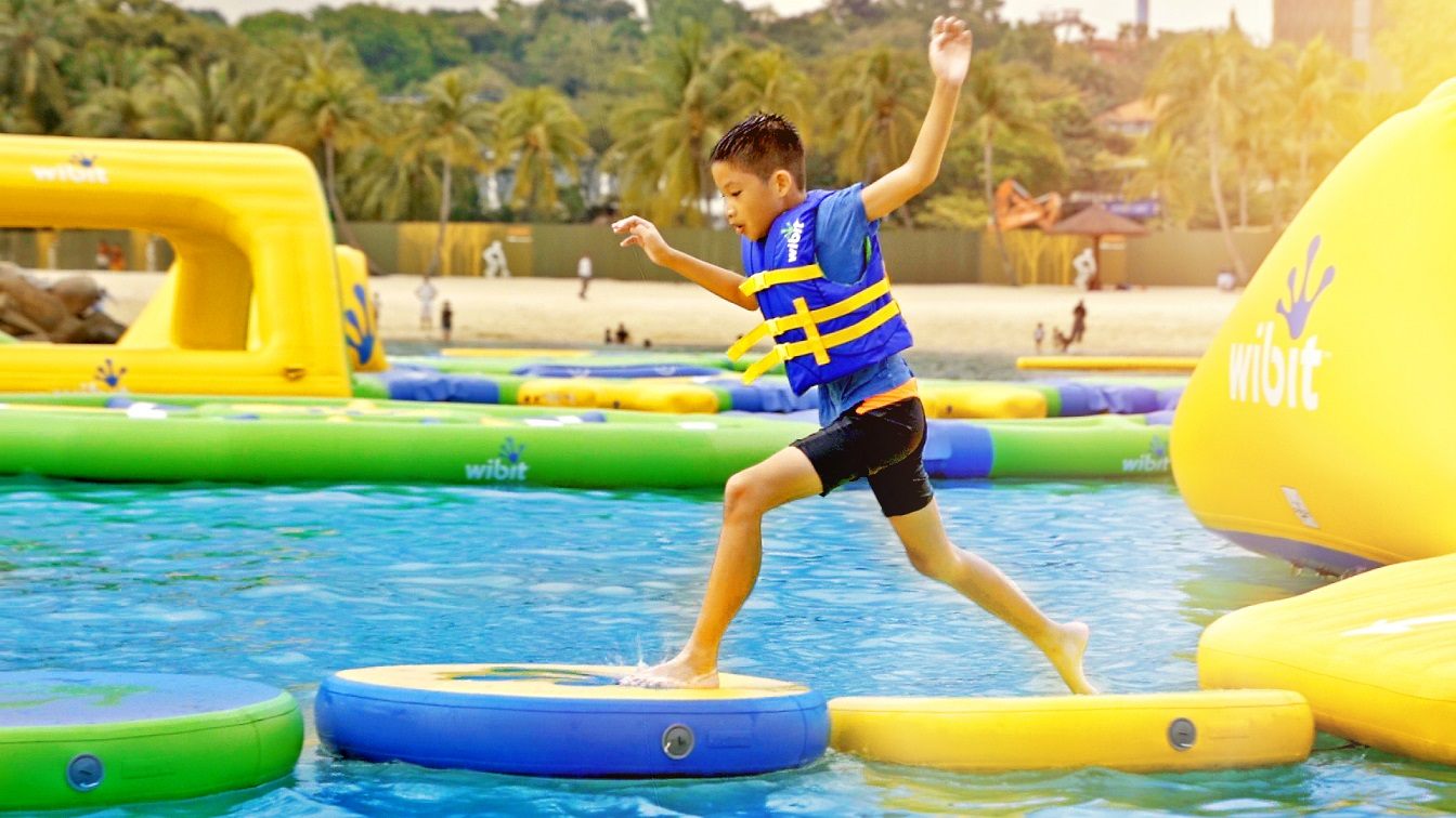一方の「パラワン@セントーサ」には、ビーチを探検し遊び、そして癒やされるアトラクションや施設が大集合。海上にはシンガポール初で唯一のアクアパーク「ハイドロダッシュ」があり、ブリッジやハシゴ、トランポリン、スライダーなどが設置されたコースに挑戦できます。