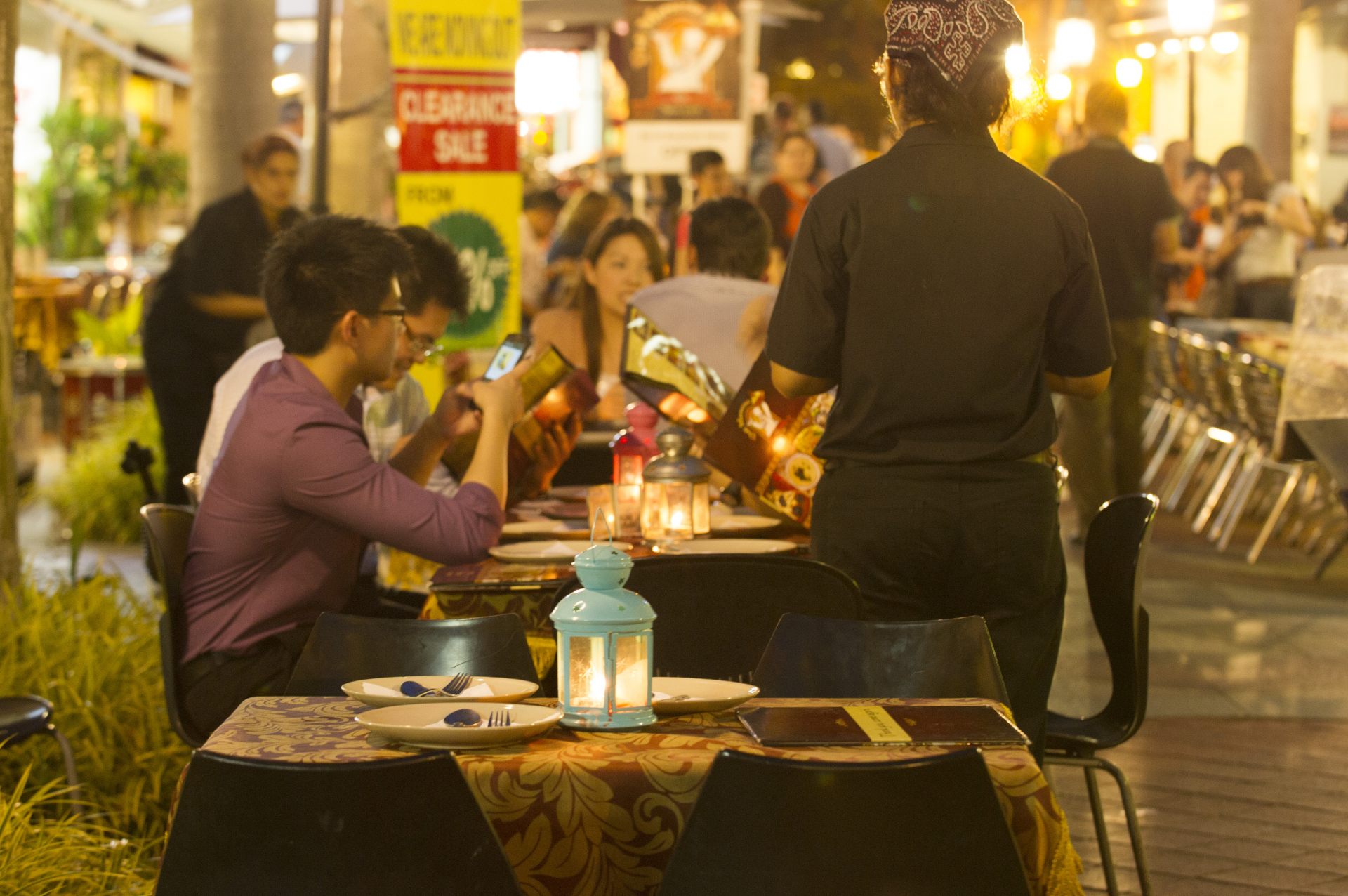 この界隈のメインストリートとなるアラブ・ストリートは、シルクやバティックなどの生地店や絨毯、インド綿やビーズの店などが多く、歴史を感じる老舗も点在しています。サルタン・モスクから真正面に延びるブッソーラ・ストリートはヤシの木々が心地よい日陰を作っていて散策にぴったり。道の両脇にはアジアの雑貨やマレーの衣料品を扱う店、トルコや中東料理のレストランが軒を連ねています。ノンアルコールのムスリム香水やガラスの香水瓶を販売する店は、旅行者にも人気。夜になると通りにまでレストランのテーブル席が並び、ライトアップされたモスクを背景に、異国ムードがいっそう色濃く漂います。