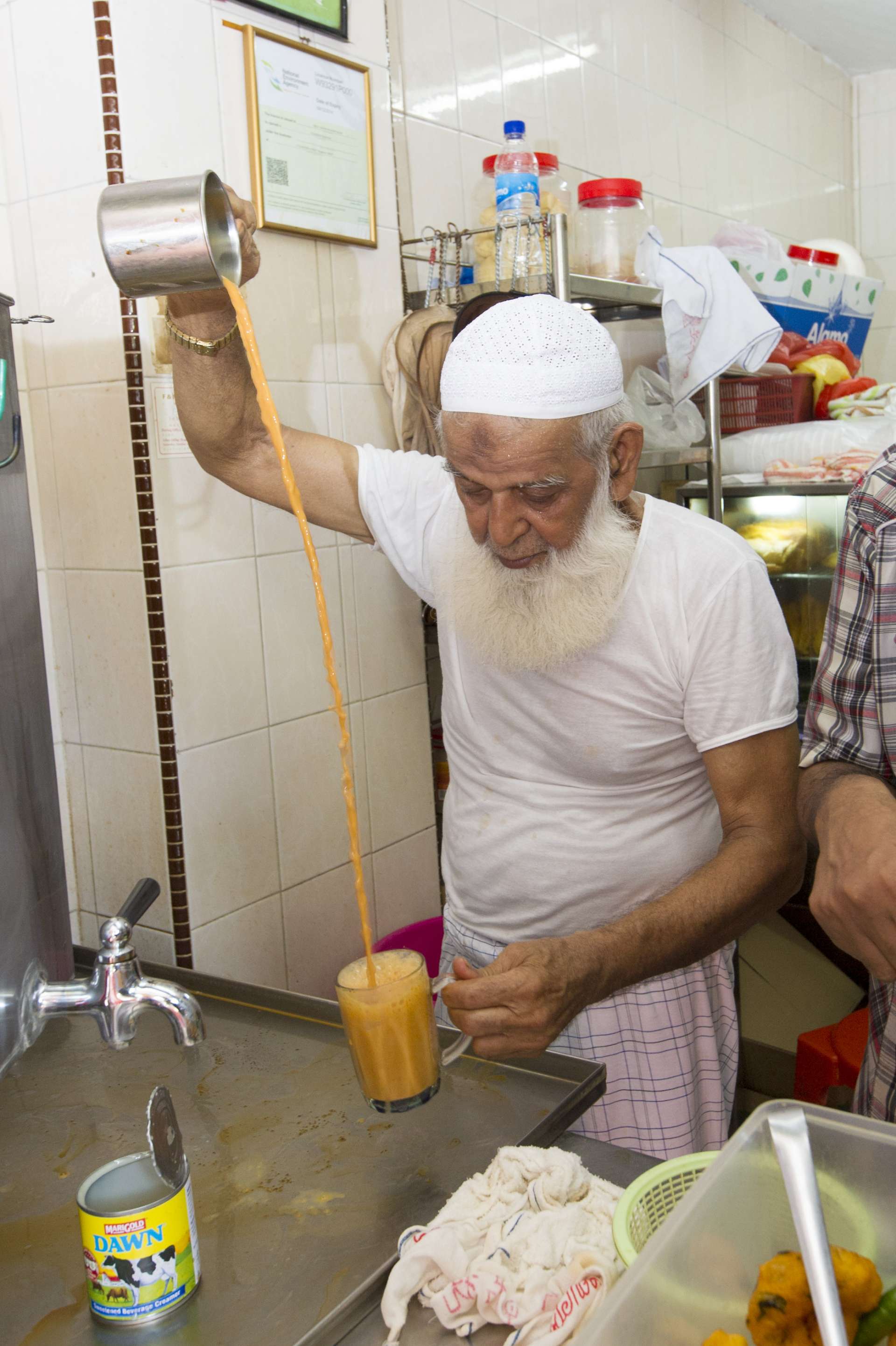 また、シンガポールの特徴的な飲み物のひとつ、テ・タリもぜひ試してみてください。テ・タリとはイスラム教徒のインド系移民が伝えたとされるミルクティーのこと。濃く煮出して作った紅茶に練乳を加え、高い位置から空気を含ませて泡立てるように注ぐのがポイント。スタンド形式の店がありますし、マレー料理店でも飲めます。辛い料理やムルタバとの相性抜群です。