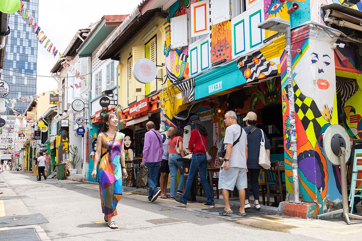 高層ビルが立ち並ぶスタイリッシュな街から車や電車で10分も移動すれば、エスニックタウンが広がっています。少し足をのばせば異国から異国へ瞬時に旅できるのが醍醐味。言葉では言い尽くせない体験ができます。エスニックタウンはマレー、イスラム文化の色濃いカンポン・ギラム、インドを旅する気分に浸れるリトル・インディア、中国文化が息づくチャイナタウンなどがあります。なかでも民族衣装姿の人々が行き交い、特色のある料理の香りに満ち、異国情緒が心に響くカンポン・ギラムとリトル・インディアをご紹介。好奇心全開で街歩きをスタートしましょう!