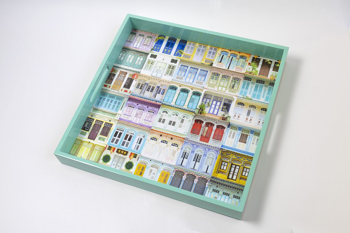 ギャラリーショップである「ギャラリーストア・バイ・ABRY」には展示作品をモチーフにしたグッズや、ハイセンスな雑貨・ファッション、絵本や料理本を揃えたブックコーナーまで備わります。在住日本人の間でもギフトとして好評なのが、「フォトファクトリー」のトレイやコースター。「フォトファクトリー」はその名の通り、写真を使ってデザインする手法で注目を集めるブランドです。シンガポールのショップハウスやプラナカン・タイルなど街のシーンを写真で切り取り、デザインし樹脂加工で仕上げたアイテムの数々。過去の遺産がカラフルで美しいアートに再生された素敵な品です。