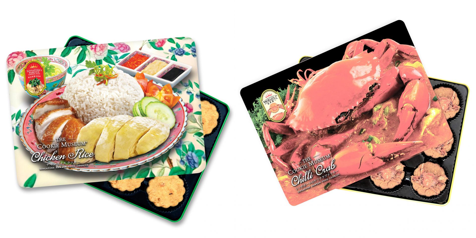 もう1店、おすすめのクッキー店をご紹介。シティホール駅直結のショッピングセンター「ラッフルズ・シティ」の地下1階にある「クッキーミュージアム」は、素材や質にこだわったクッキー専門店。ナッツやフルーツを用いたものなど豊富なラインアップのなかでも、注目したいのはチキンライスやチリクラブなどローカルフレーバーのクッキーです。手作りでていねいに作られたクッキーは 食感もスパイスの風味もよく、缶のデザインもインパクト大! ショッピングセンター「サンテック・シティモール」内にも店舗があります。