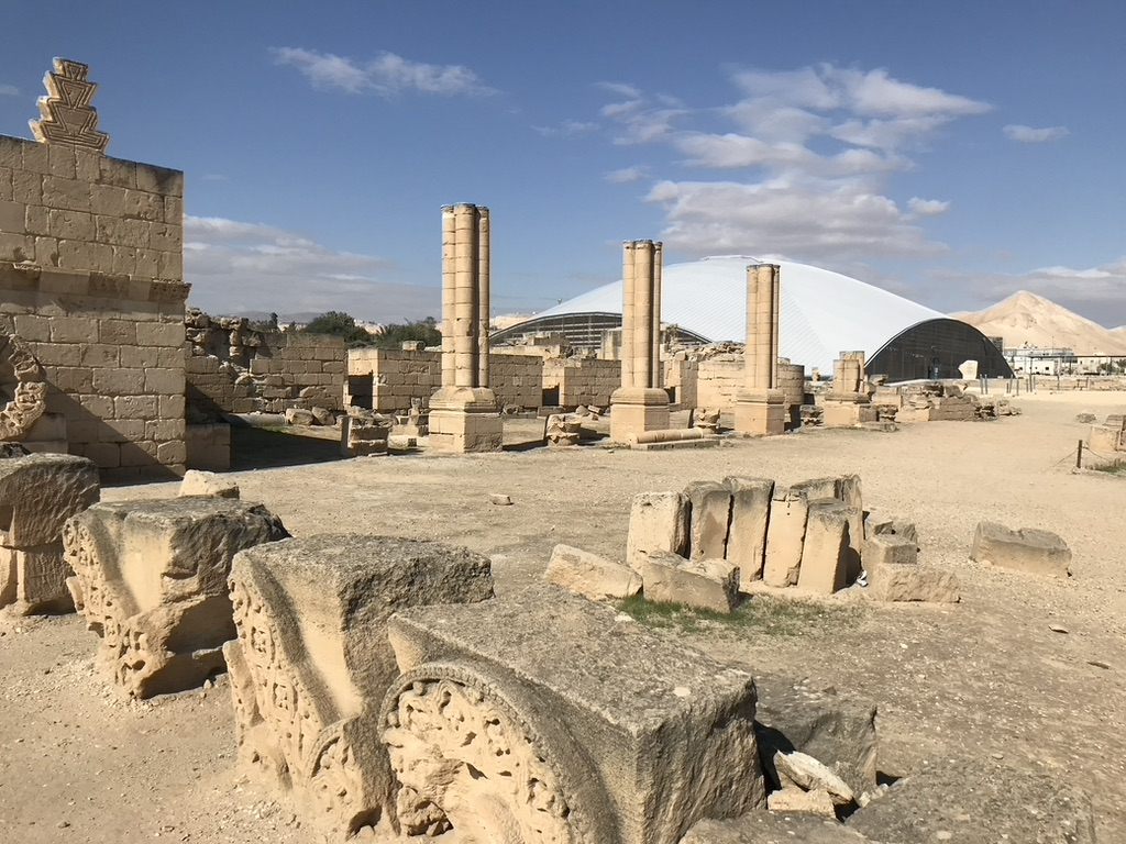 しかし、その実現に向けた大きな課題のひとつが、観光と展示を両立する難しさです。およそ1300年前の建造物であるヒシャーム宮殿は、日光や雨風に晒されることによる建築物の風化が課題となってきました。遺跡の保存を優先するため、先述の見事なモザイク床は、防護のための砂やジオテキスタイル(合成繊維シート)で覆われた状態が長く続いていました。これではせっかくのモザイク文様も見ることができず、また、一部の観光ガイドがシートをめくって見せるなどして、遺跡の一部が傷ついてしまう等のケースも見られ、適切な設備や対策の充実が求められていました。