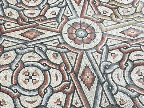 現代のような豊富な塗料がない時代に、異なる色味の天然の岩や石を砕いて作られた小さな角片を組み合わせ、鮮やかなイスラム式の文様を宮殿大浴場の床に描いた様は、歴史的価値を直感できる美しさを私たちに見せてくれます。