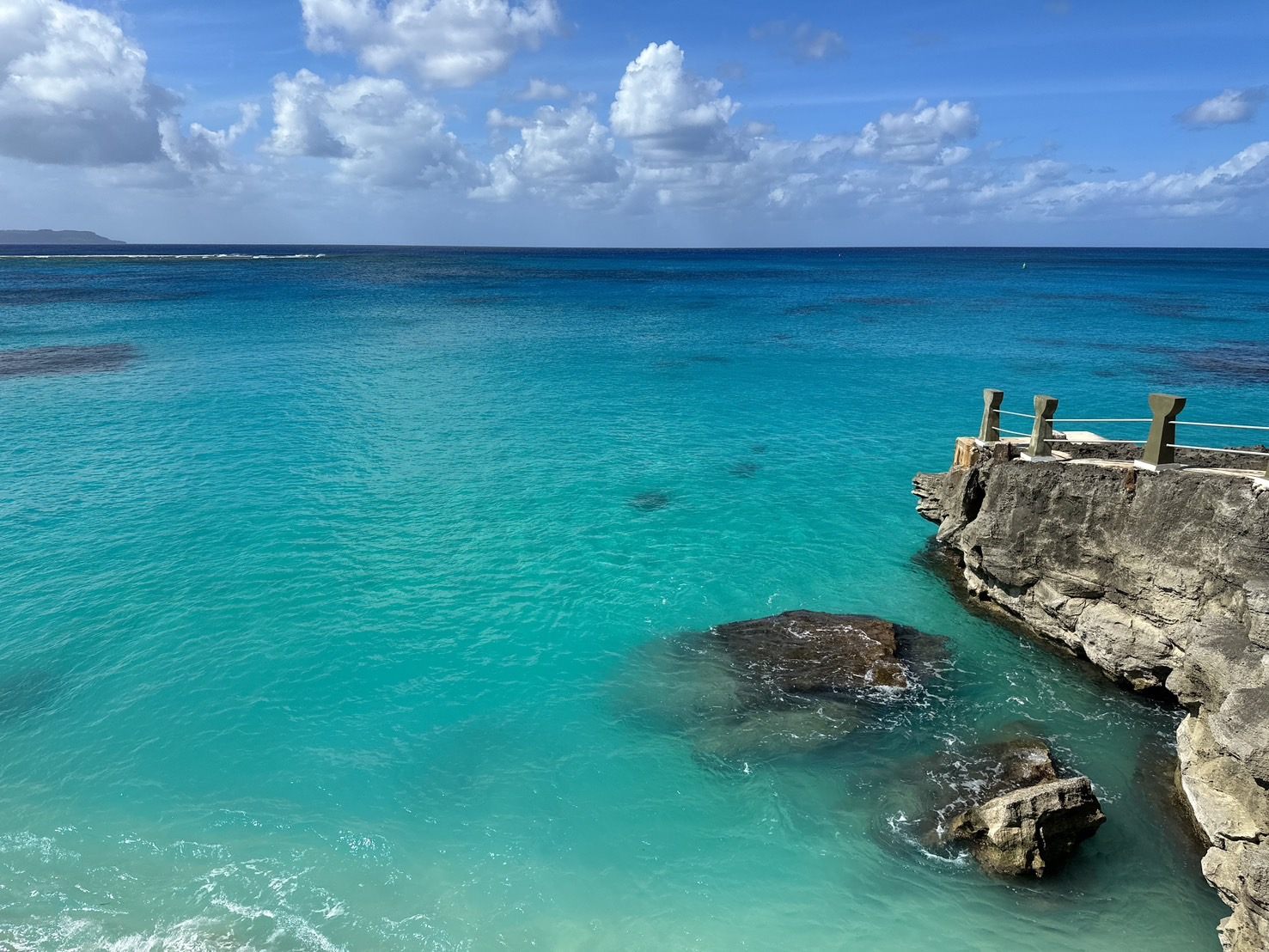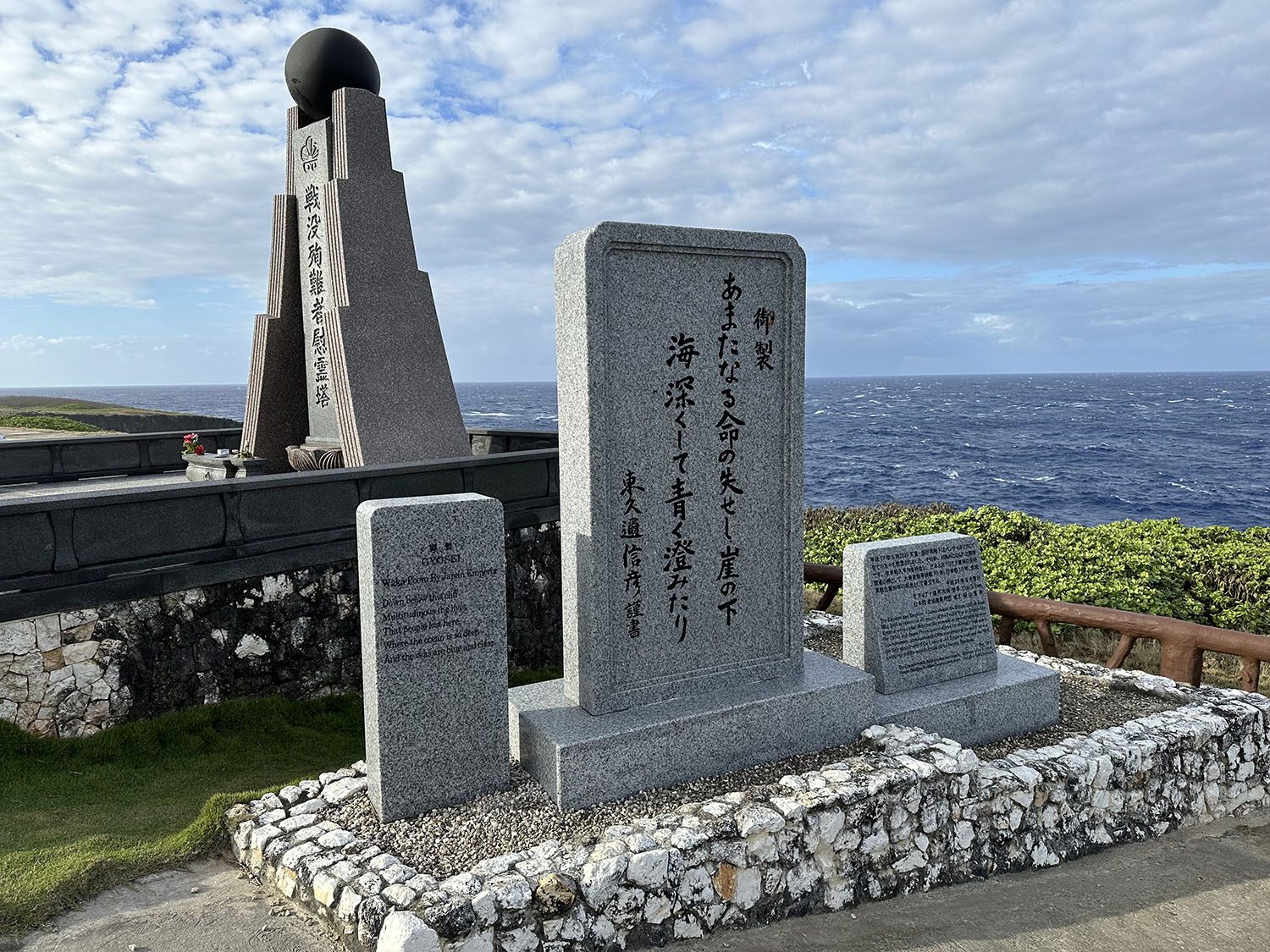 まず向かったのは、サイパン島最北端の岬バンザイクリフ。太平洋戦争中、追い詰められた日本人が「バンザイ」と叫びながらこの岬で海に身を投じたことから、バンザイクリフと名づけられたという悲しい場所。この岬で亡くなった方は1万人以上といわれ、慰霊碑も建てられています。