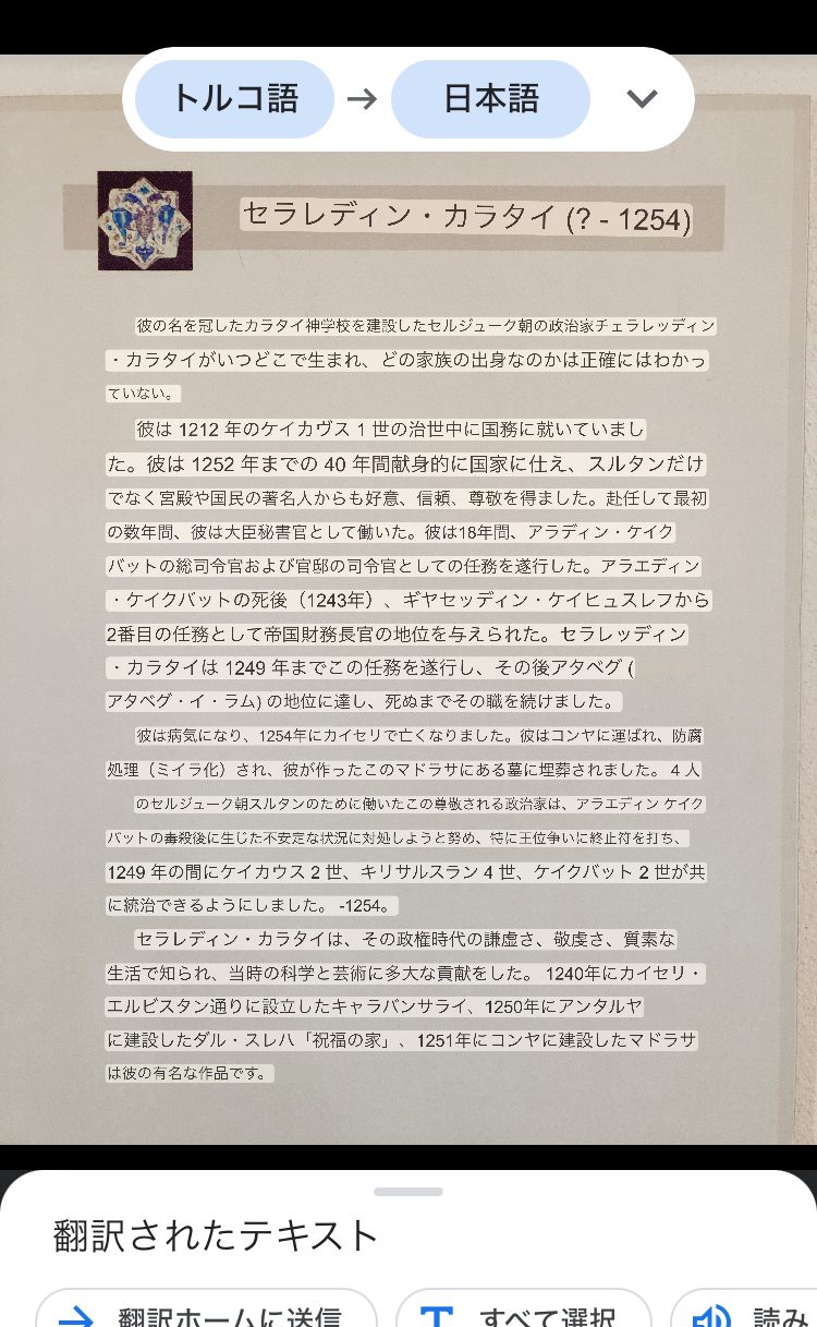 まずは博物館へ行った際に翻訳した、13世紀にセルジューク朝の宰相だったジェラーレッディン・カラタイについての説明文から見てみます。