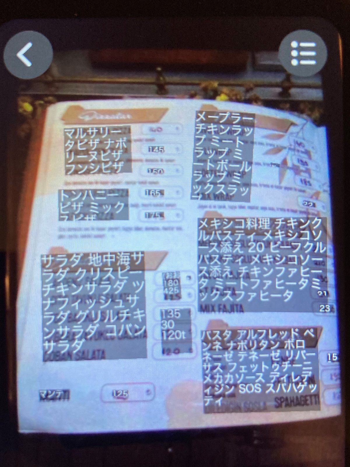 次はレストランのメニュー表を翻訳してみました。