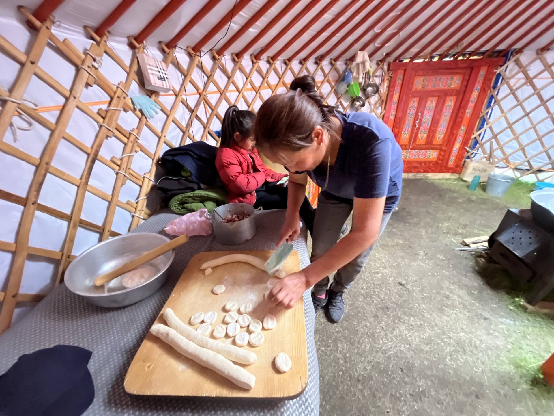 2023年夏の本書の取材でも遊牧民宅を訪問し、乳搾りやボーズ(蒸し餃子)作りを体験しました。どちらも遊牧民のお母さんの手に掛かるといとも簡単そうに見えますが、実際に体験するとそうはいかないことが分かるはず。