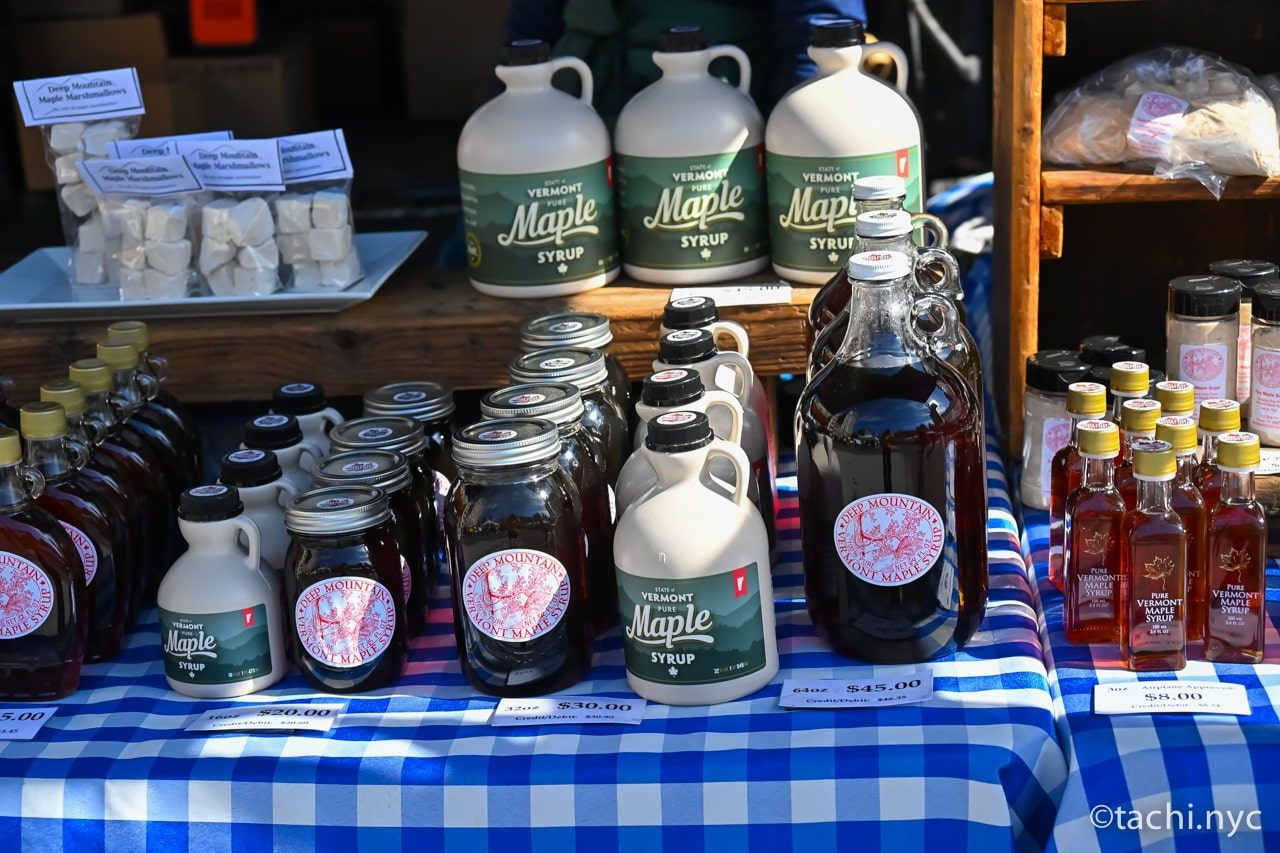 グリーンマーケットの商品を眺めていると、ニューヨークに住みたい! と思う方もいるかもしれません(かつての筆者もそうでした)。各種チーズやメープルシロップ、ハチミツをテーブルにのせて、朝食を食べられたらと憧れますよね。ニューヨークを北上したバーモント州はカナダと隣接しており、メープルシロップの産地。フレンチトーストやパンケーキにたっぷりかければ、すてきな朝が始まりそうです(実際ニューヨークに住んでみると、そんな優雅な朝はなかなか迎えられないですが……(笑))。