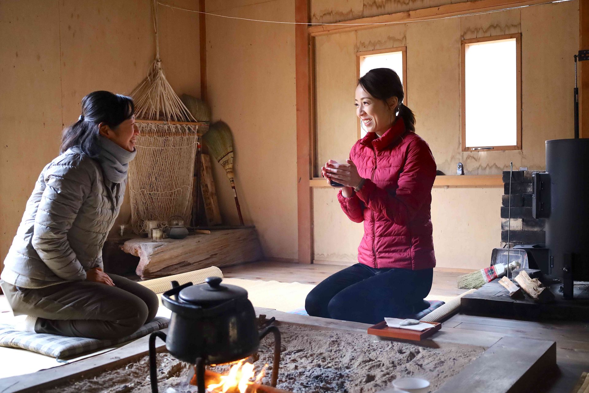 今回は、看板プランでもある「森林セラピー体験ツアー」の一部を体験。森林の中にある山小屋では、炎がゆらめく囲炉裏を囲みながら、オリジナルブレンドのコーヒーやハーブティなどを片手に、心からリラックスすることができます。