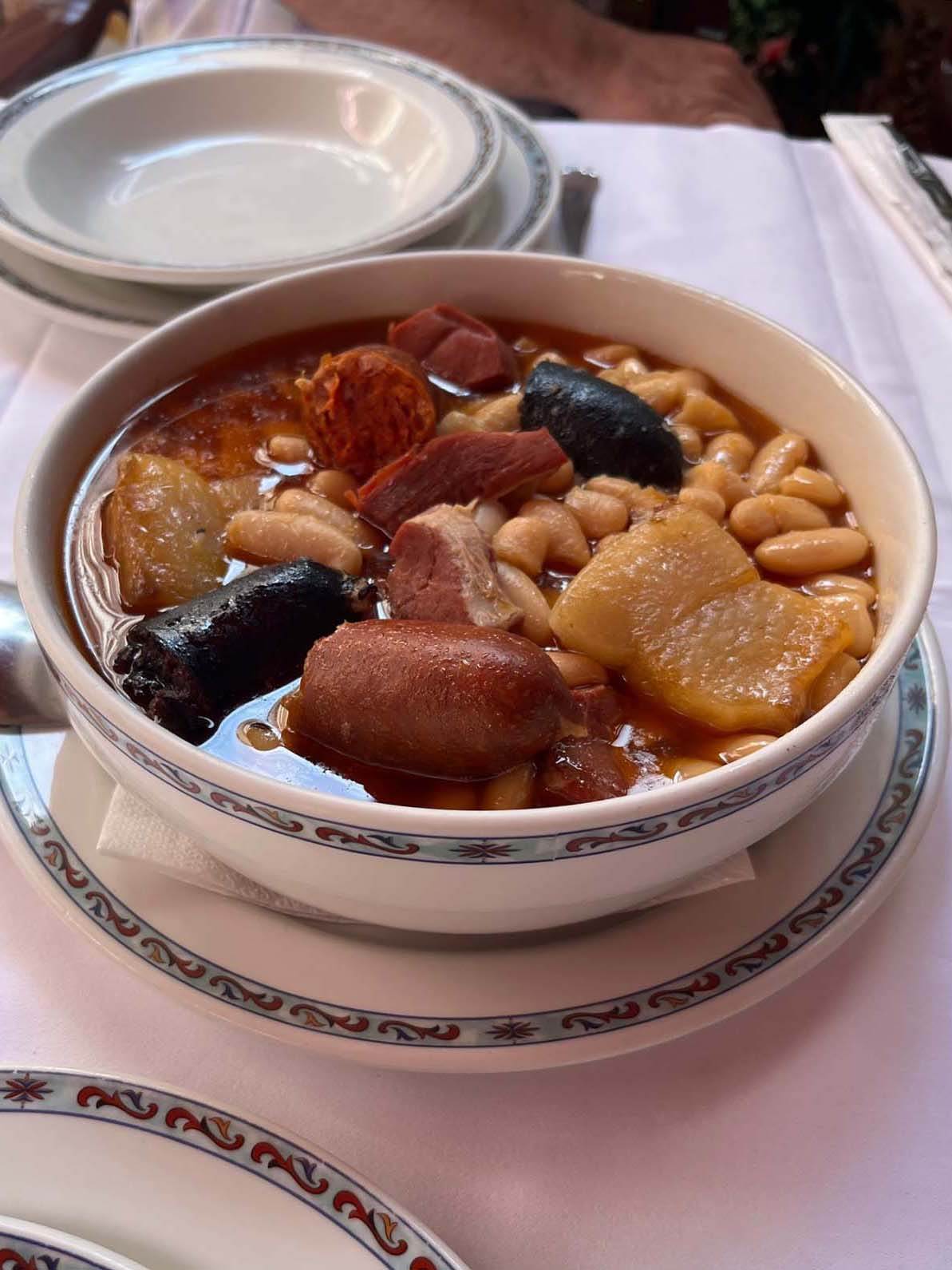 ファバーダとは、白インゲンとモルシーリャ(豚の血入りソーセージ)、チョリソ、豚肉を一緒に煮込んだアストゥリアスの郷土料理です。残念ながら筆者は、これまで豆料理でそれほど美味しいと思えるものに出会ったことが無かったのですが、今回は別でした。見た目こそ、ザ・田舎料理ですが、ほっくりと煮込まれた豆の美味しさはもとより、おそらく豚の脂身のおかげか、煮込んだ汁が背油入りのラーメンスープのような濃厚さで、自分史上最高の豆料理でした。