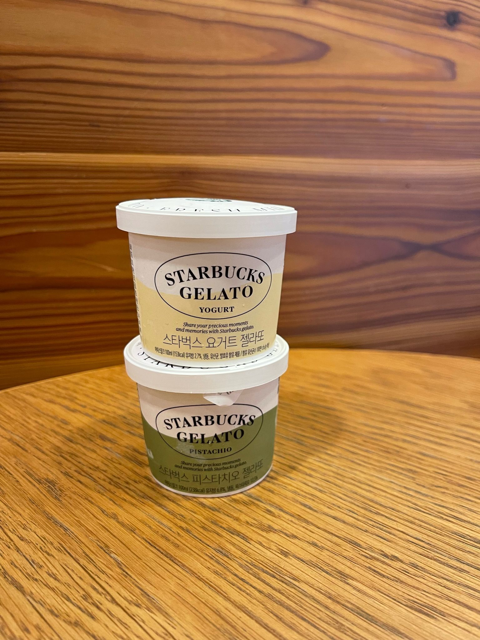 それから忘れてはいけないメニューがもうひとつありました。それは韓国限定のジェラート! 味はピスタチオとヨーグルトの2種類。ちなみに、結構甘いです。最近では「ストロベリーヨーグルトジェラート」も発売されたそう。次回韓国へ行く際に注文してみようと思います。