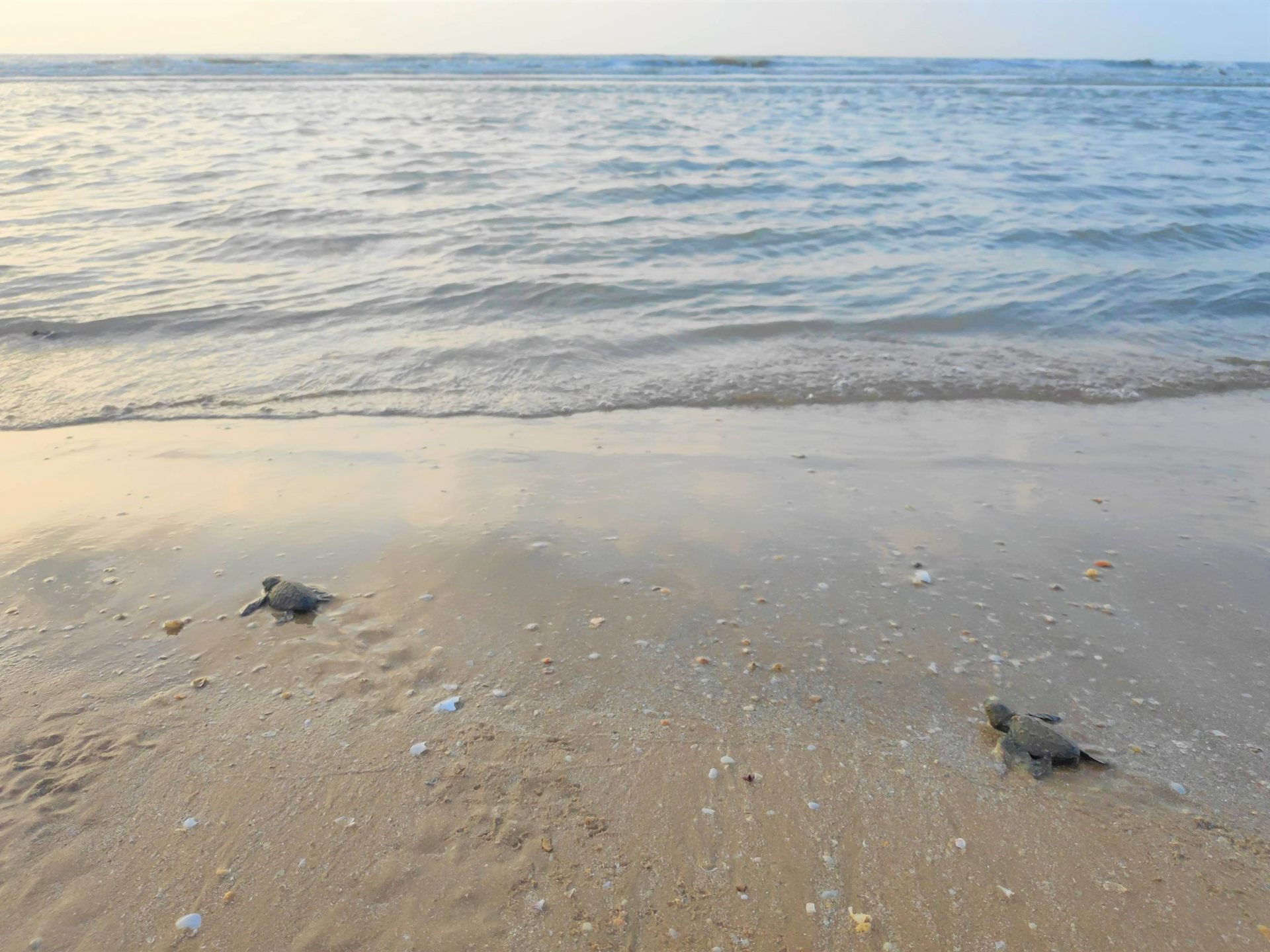 ここは、ヒメウミガメの生息地でもあり、毎年多くのウメガメが砂浜に産卵にやってきます。夜中、砂浜に産卵されたウミガメの卵は、地域住民や漁師の協力のもと回収され、専用の孵化場に移されます。後日、孵化したウミガメは海に放流されます。