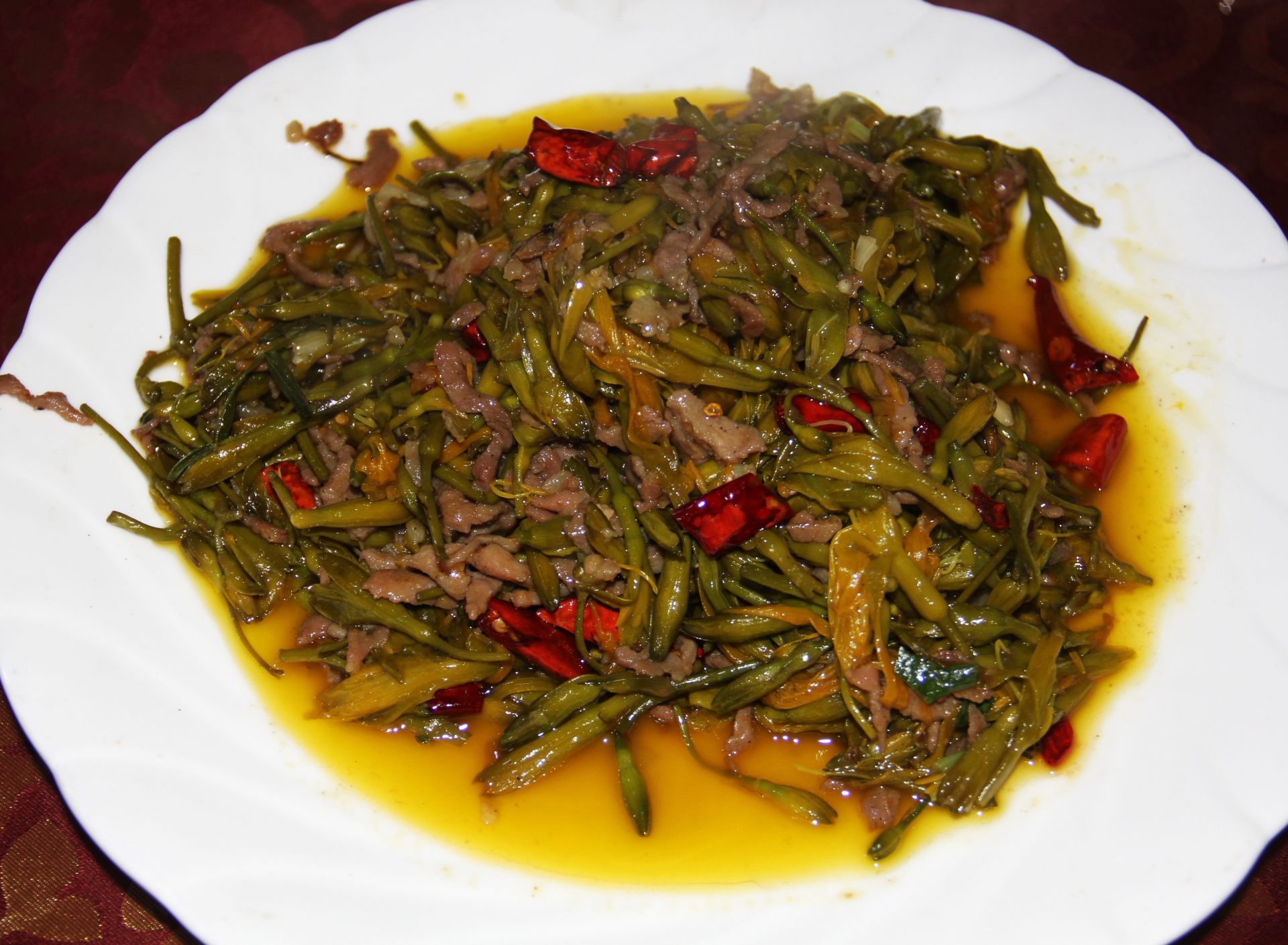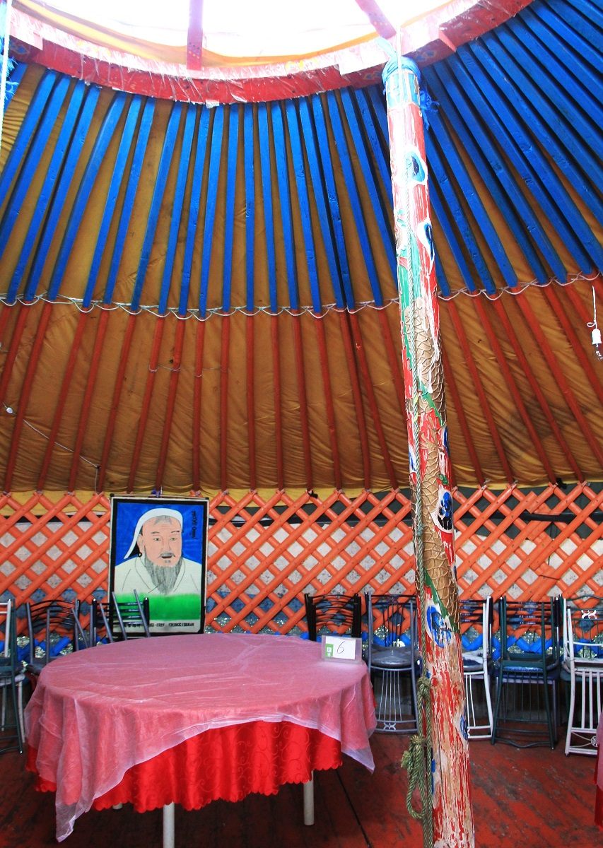 旅行中は白さんと一緒に食事をとりましたが、特にフルンボイル草原の一部である七仙湖草原での昼食が印象的でした。厨房は大きなパオの中にあり、食事は別のパオの中でとります。内モンゴルでは羊料理が中心ですが、特にクセはなく、おいしく食べられるように調理されています。どれも大皿で提供され、取り分けて食べます。2~3種類のおかずと白米(または麺)を頼めば、食べきれないほどの量になります。