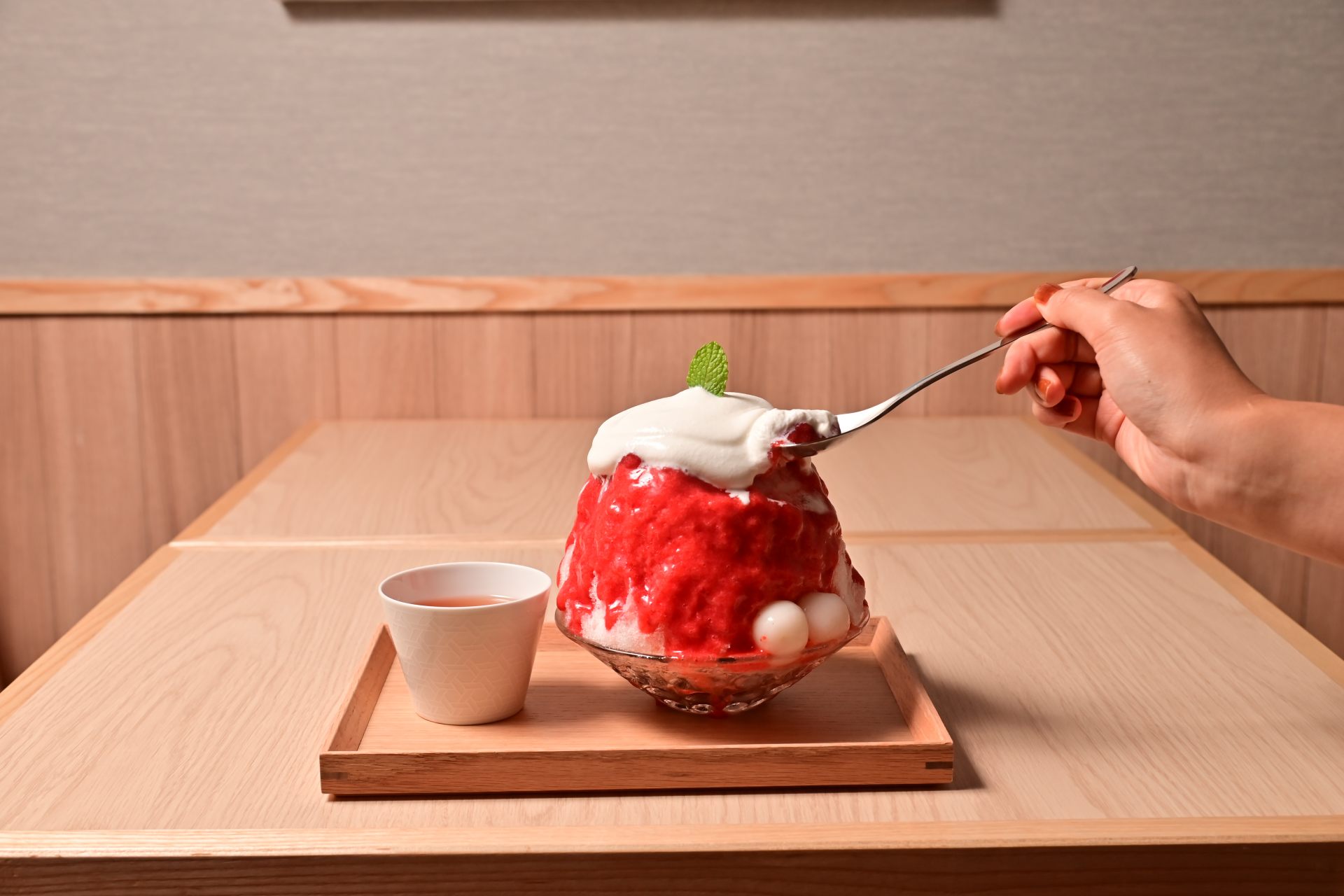 那覇のまちぐゎーに2023年9月オープンした「ホシのシズク」では、金時豆を煮て作る沖縄ぜんざいの上にふわふわのかき氷、島のイチゴや紅イモを使った自家製シロップがたっぷりのハイブリッドな沖縄ぜんざいを提供しています。イチゴはシロップと果肉の2種類を使用したりと工夫を凝らしたかき氷をぜひ食べてみてください。