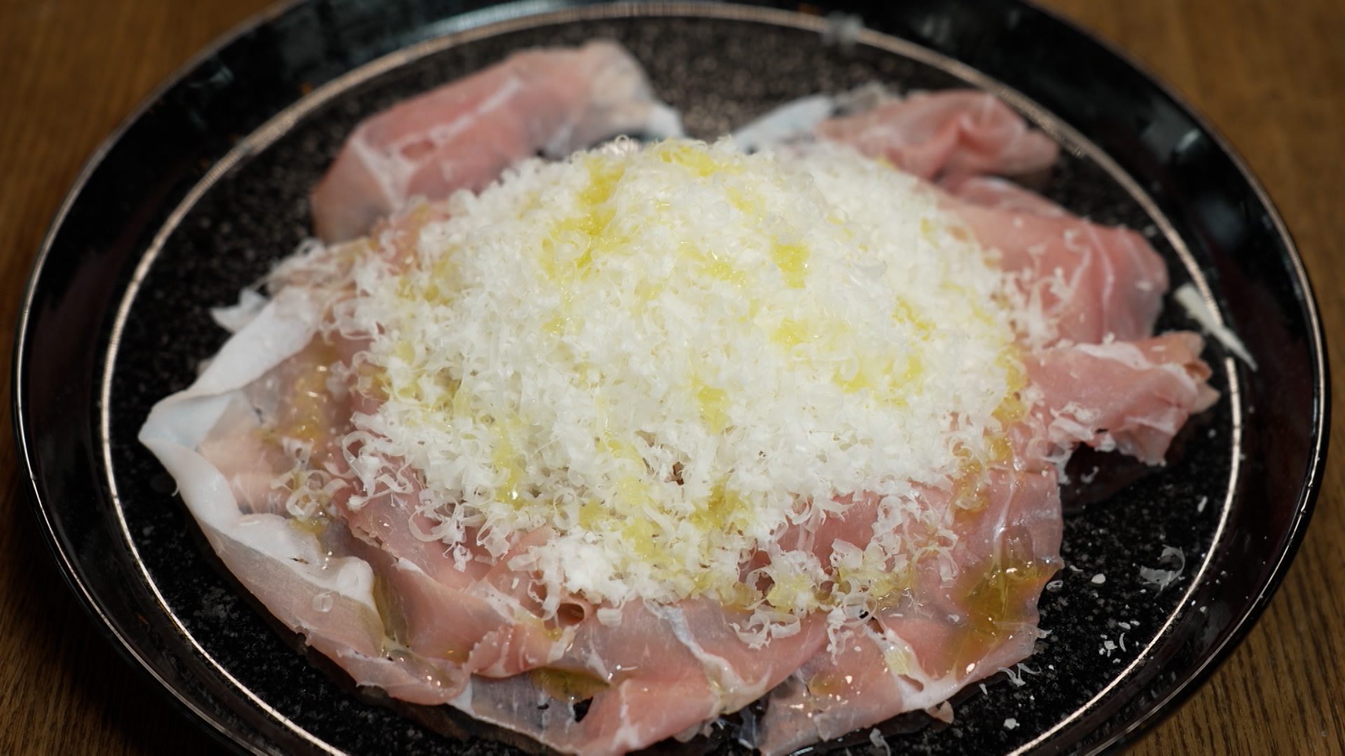 なかでも木南晴夏おすすめの料理が……「ふわふわ」生ハムと「ふわふわ」チーズ! 薄くふわふわにスライスされた生ハムに、ふわふわに削られたチーズをこれまでもかとのせた、ふわふわ尽くしの一品です。