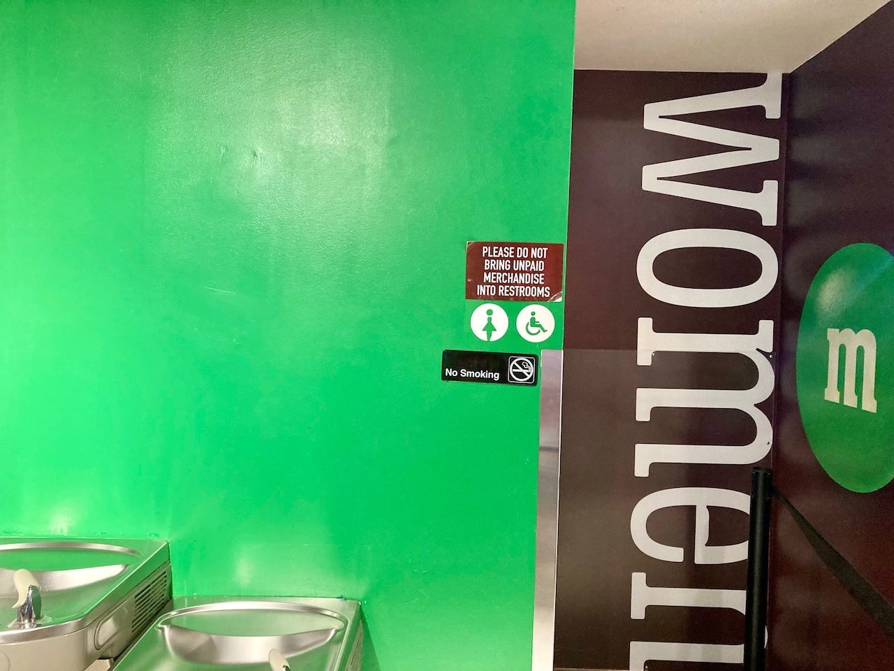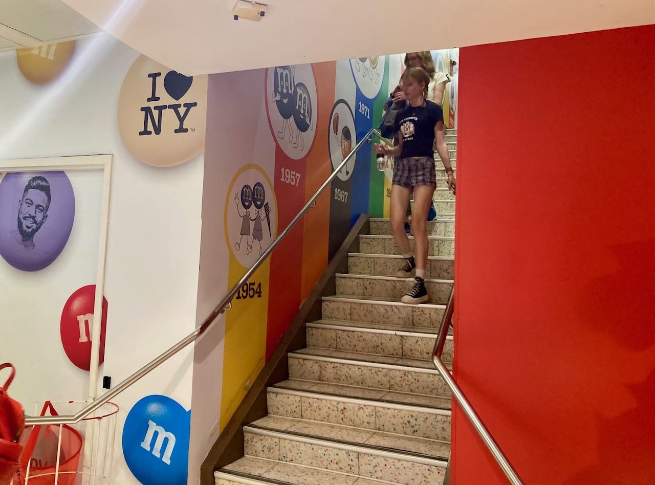 店内にいるほぼ全員が、おみやげを探しにきた観光客なのではないかと思われる「M&M ニューヨーク」。タイムズスクエアに近く、派手な広告塔があるので、場所がわかりやすいのが嬉しいですね。トイレは3階にあります。取材時は順番待ちの列が長かったので使用せず、中は未確認です。