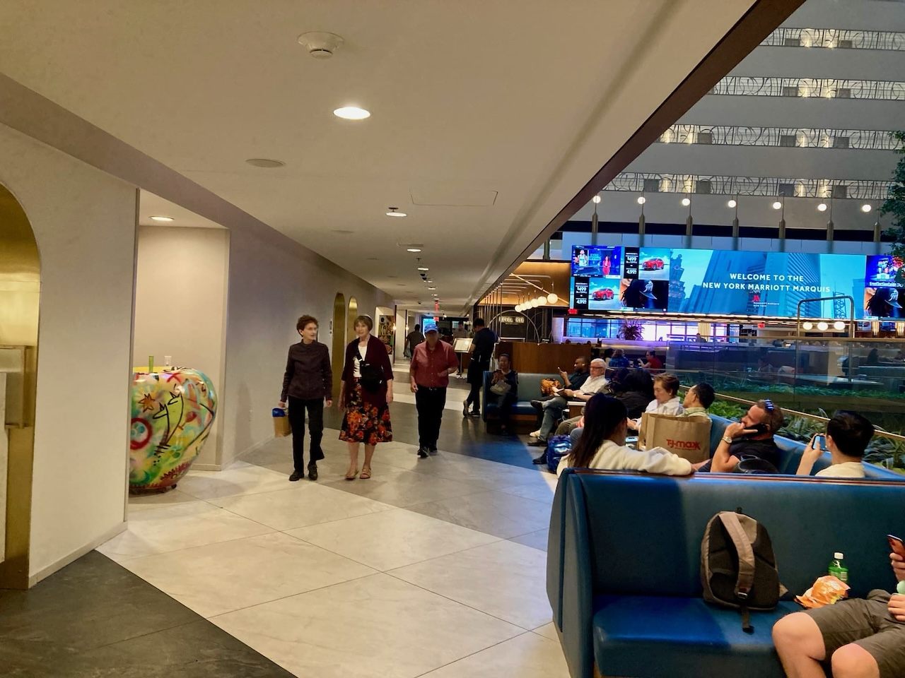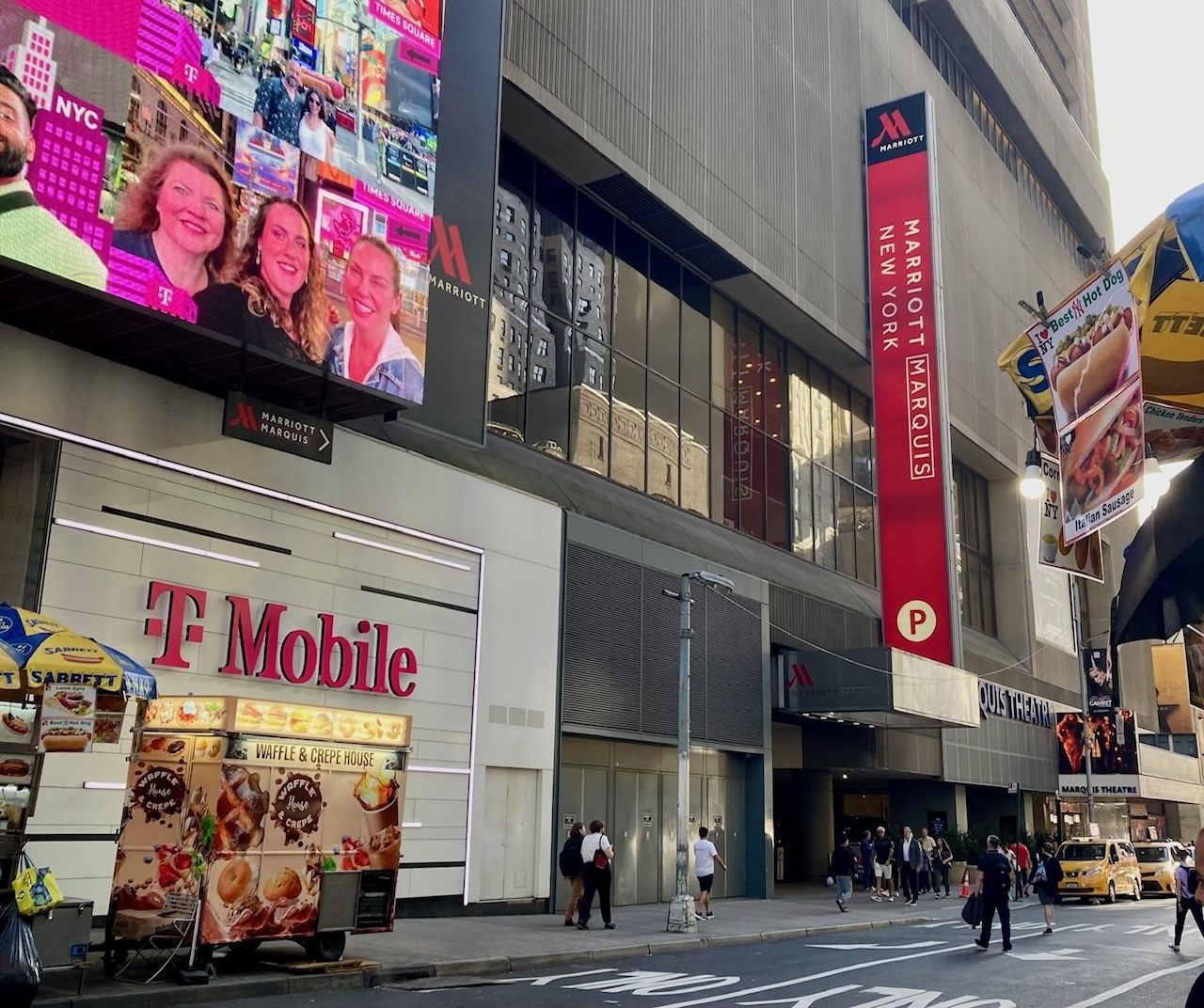 また下層階(2階〜7階)には、ビジネスミーティングやイベントが行われる会議室や劇場があり、各階にトイレがあります。1階にはスタバがあり、人の出入りが多い巨大ホテルなので、トイレ利用に紛れ込んでも目立ちません。入館のハードルが低く、タイムズスクエアのすぐそばなので、覚えておくと役に立ちます。