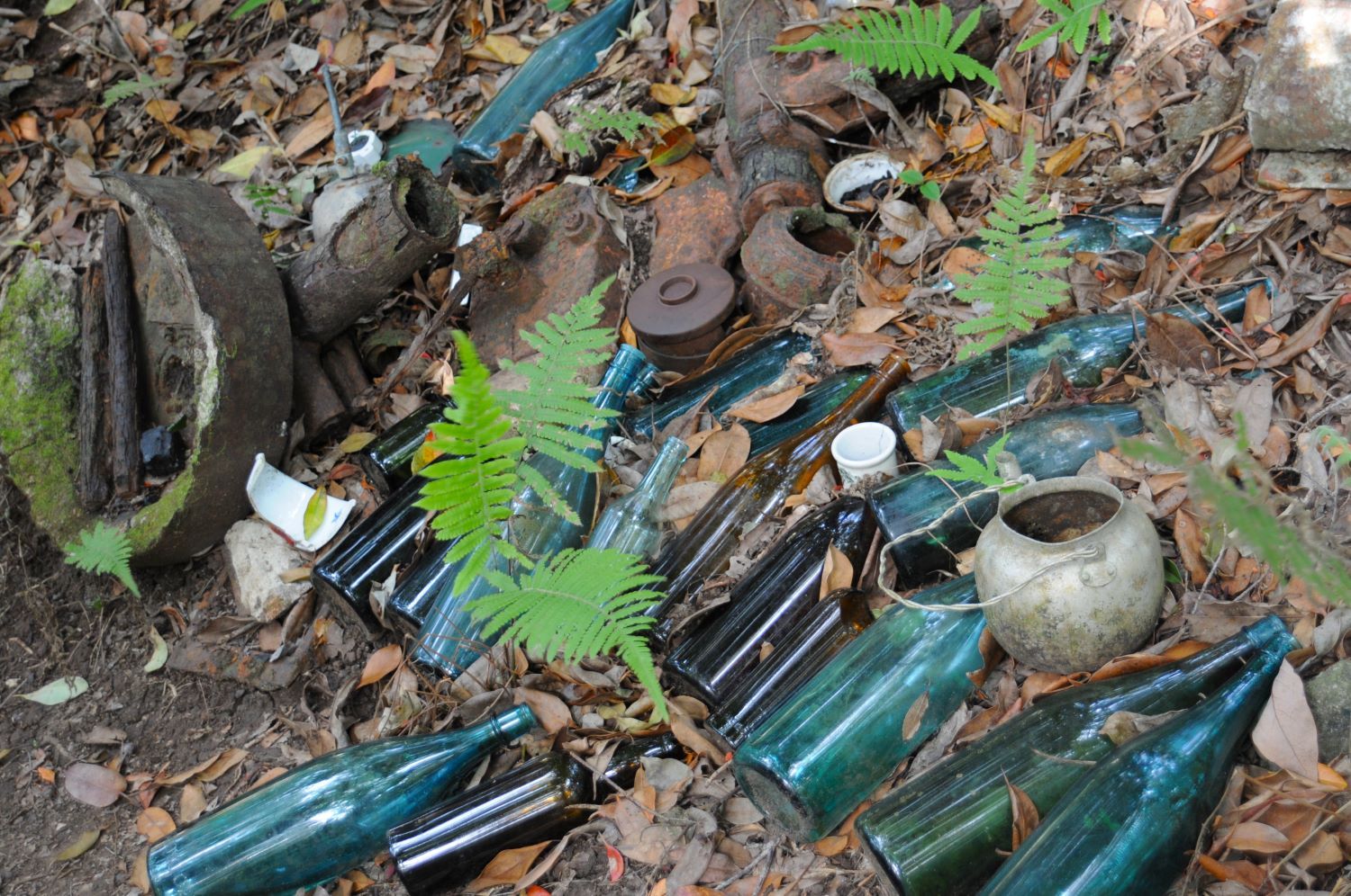 父島や母島の森には、現在も日本軍が築いた壕や大砲が残り、周辺には当時使用されていた食器や瓶が散らばっています。