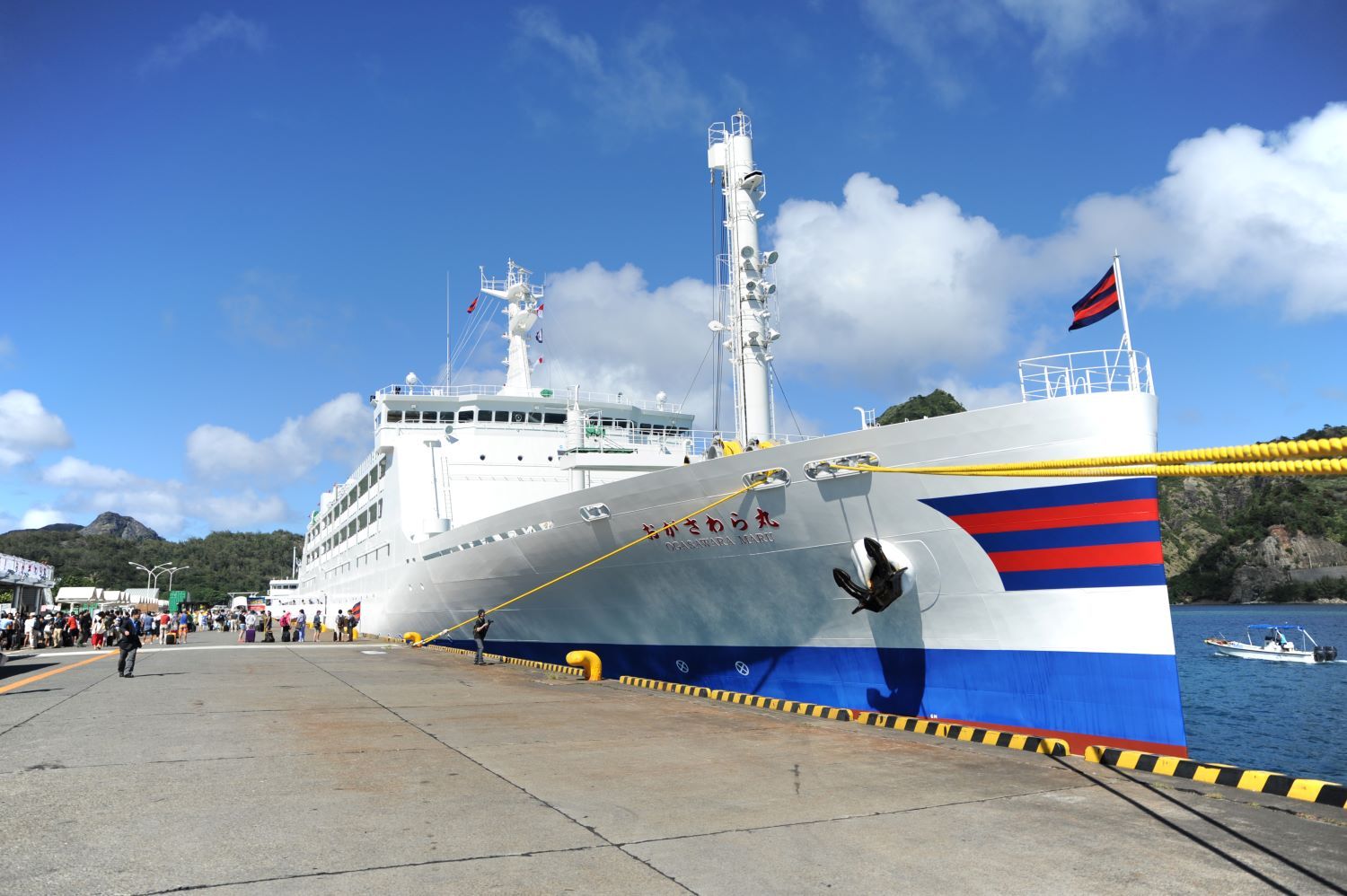 小笠原諸島へのアクセス方法は船のみ。東京・竹芝桟橋と父島の二見港を、定期船のおがさわら丸が結んでいます。基本的に週に1便の運航で、片道24時間の船旅。往復48時間を船内で過ごすことになりますが、甲板から沿岸の景色を眺めたり、夕日や星を観賞したり、レストランで島食材を使った料理を味わったりと島気分を満喫できます。