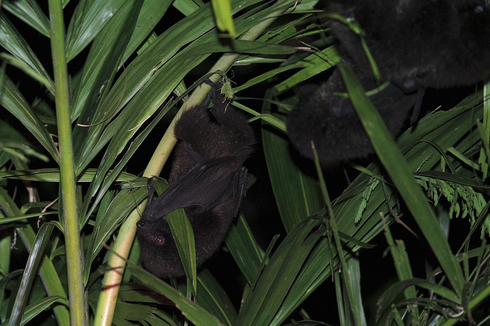 上空を音もなく飛び交うオガサワラオオコウモリは、小笠原で唯一の哺乳類の固有種。羽を広げると80cmにもなるそう。ビーチに出ると、森からでてきたオカヤドカリが見つかります。小笠原には6種類が生息していて、すべてが天然記念物に指定されています。