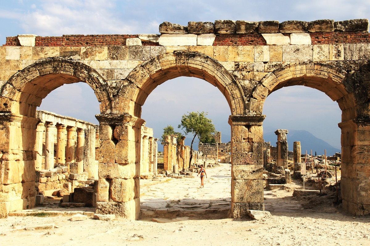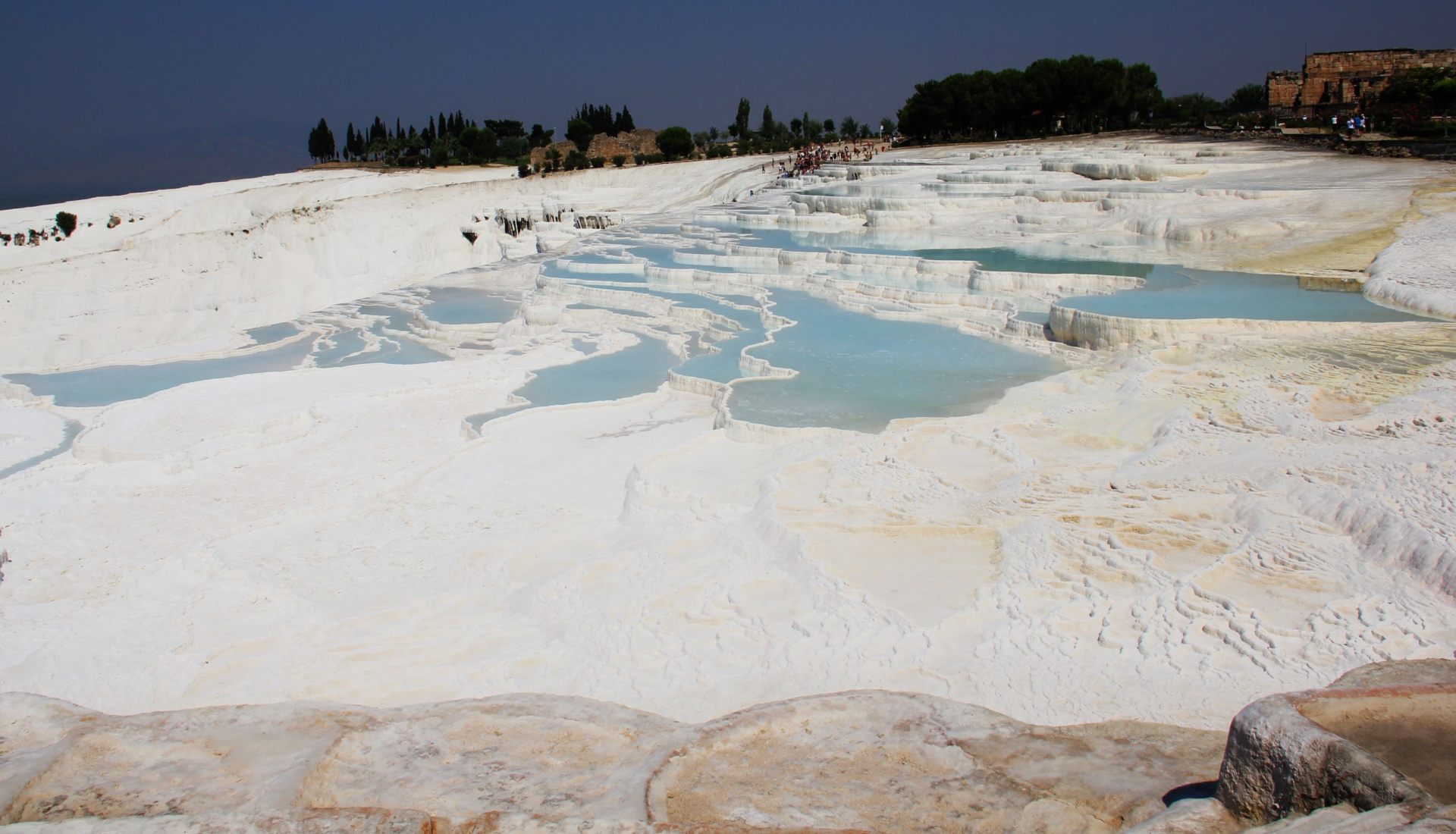 多くはないものの、ツアーのなかには「アンティーク・プール」(別名クレオパトラプール)と呼ばれる温泉プール施設での入浴を含むものがあります。パムッカレは、ユネスコ世界遺産として有名ですが、自然遺産ではなく文化遺産として登録されています。大自然が作り上げた石灰棚だけでなく、周辺に広がるローマ時代の都市遺跡ヒエラポリスと合わせて登録されているのです。古代ローマの人々にとっても、パムッカレの温泉は魅力的だったのでしょう。当時の円形劇場や温泉大浴場がよい状態で保存されていますが、すべてを見学するにはかなりの時間と体力が必要です。