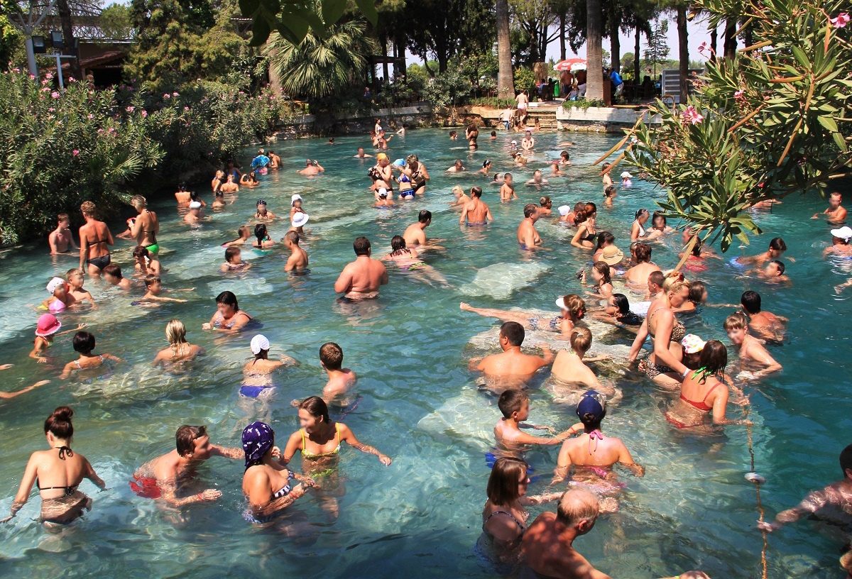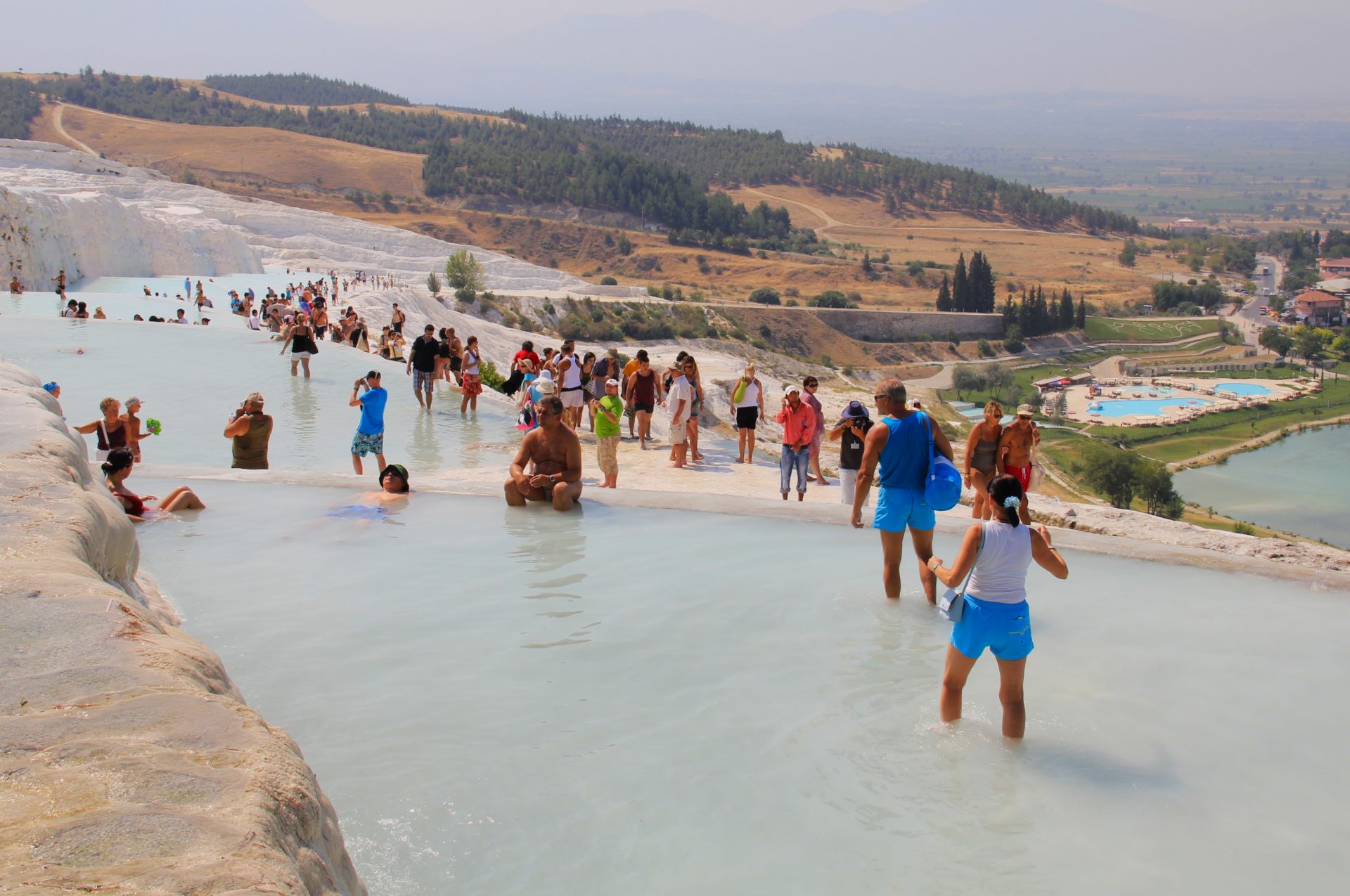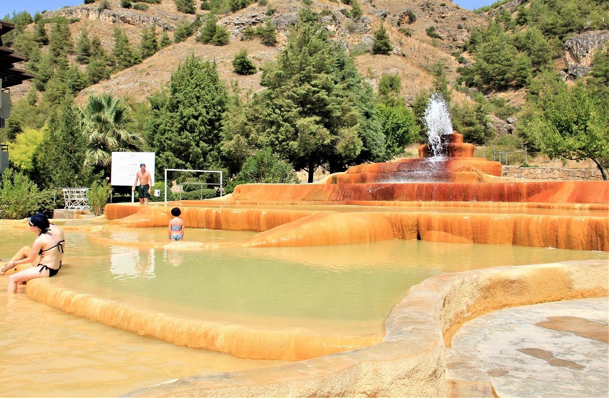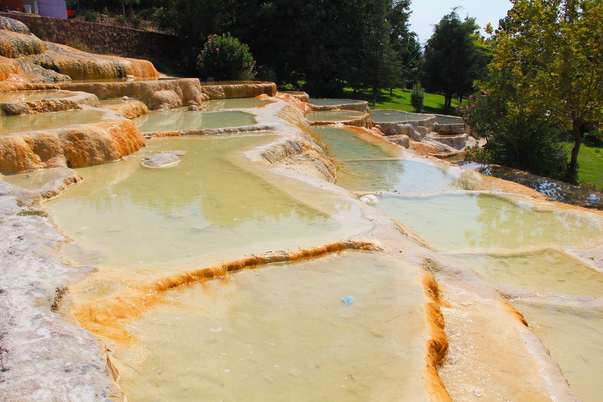 パムッカレのあるデニズリ県には多くの温泉があります。個人旅行でパムッカレを訪れるなら、ぜひ周辺の温泉巡りを楽しみたいものです。個人の場合、イスタンブールから国内線でデニズリ空港に向かいます。空港からパムッカレやカラハユットへはシャトルバスが運行されていて、約1時間です。カラハユットのホテルに事前にメールで依頼しておけば、好きなところを回れる専用車を手配できますし、日本の旅行会社のなかにも対応してくれるところがあります。