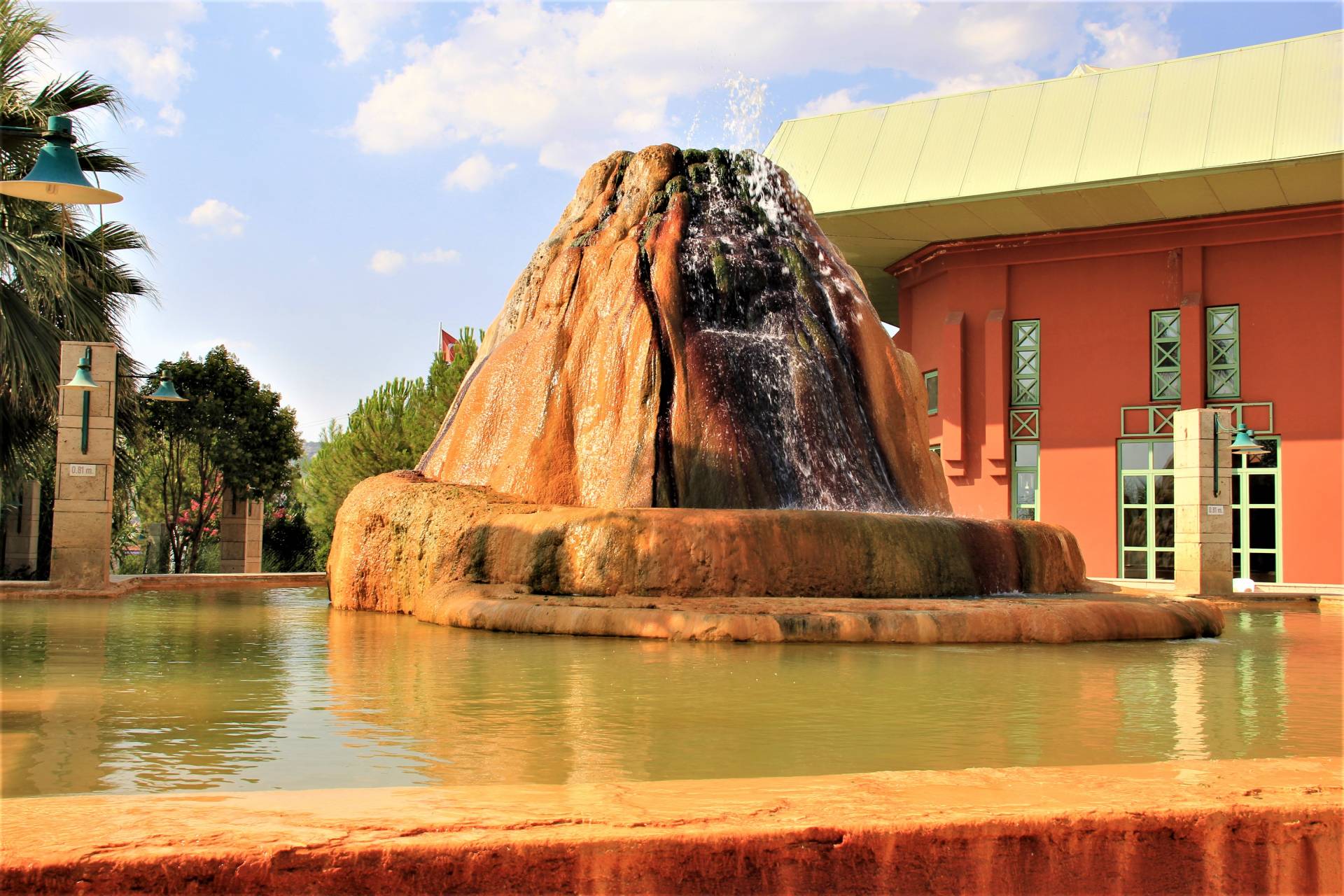 パムッカレと同じく、カラハユットの温泉は成分が堆積しやすい泉質です。このため、その施設のシンボルとなるような析出物のオブジェが競うように作られてきました。今では、温泉プールの析出物オブジェを見れば、どの施設かがわかるほどです。筆者はできるだけ多くの施設を体験したかったので、ふたつの宿に1泊ずつしました。「ポラット・テルマルホテル」にはプリンのような形状の噴泉塔、「パム・テルマルホテル」には石灰棚を模したような温泉プールがあり、どちらもすばらしいホテルでした。