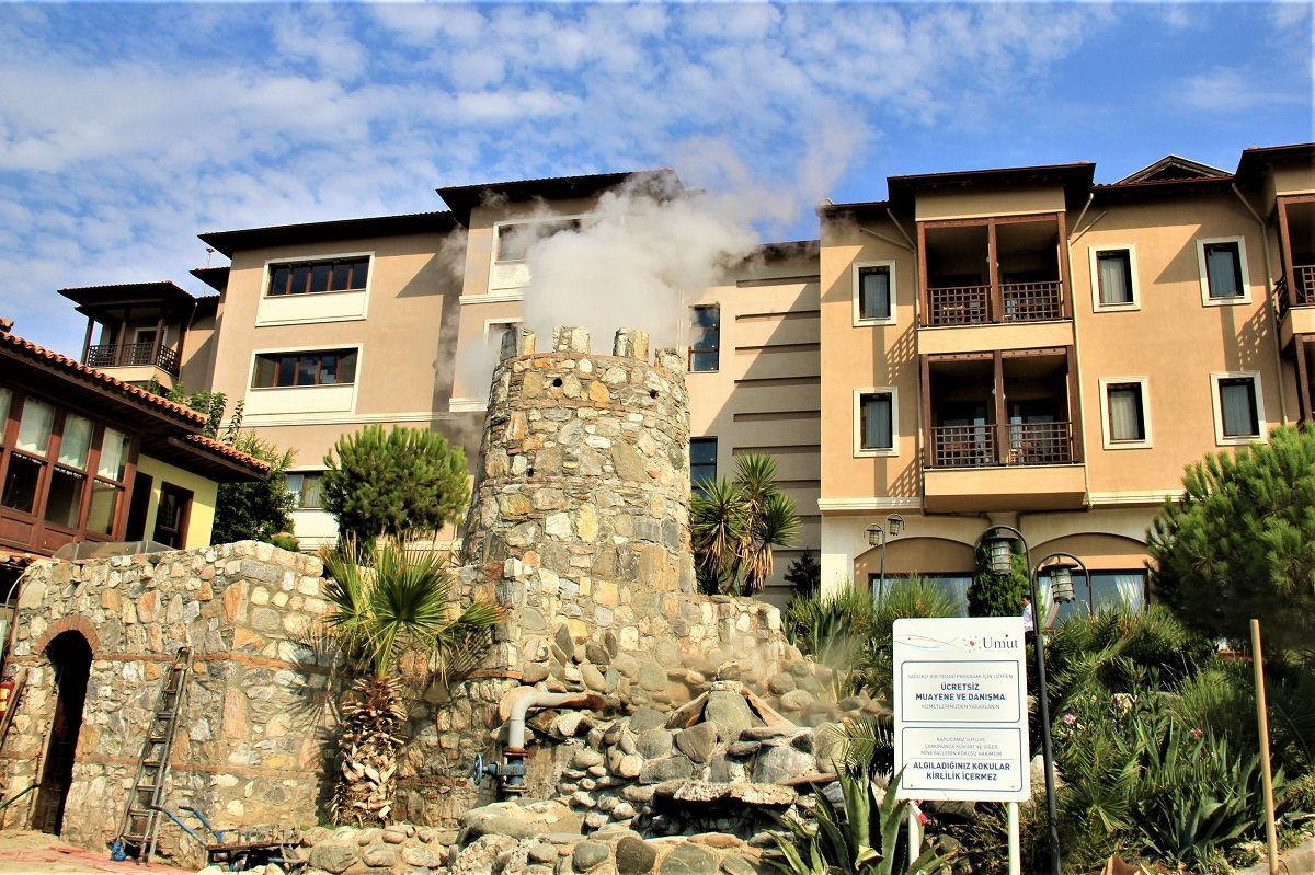 パムッカレの西、約40kmにある一軒宿のリゾートホテルです。パムッカレの喧騒がウソのように静かな温泉ホテルは入浴のみの利用も可能です。泥湯も楽しめます。