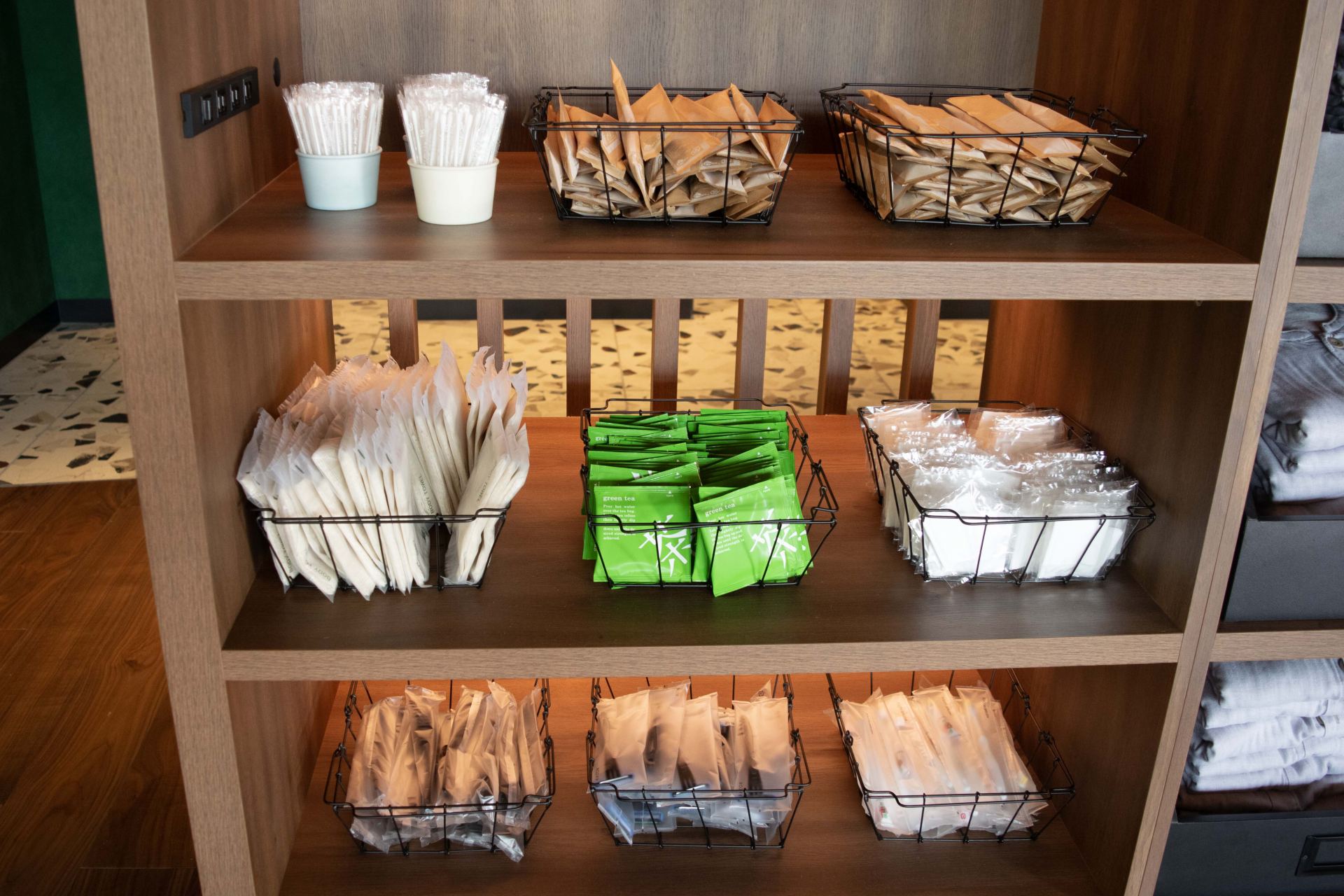 ちなみに、シャンプー・コンディショナー・ボディソープは部屋に備え付け。化粧水や洗顔は備え付けではないので、愛用品を持ち込むか、14階のSHOPコーナーで星野リゾートとOSAJIがコラボしたアメニティセット(360円、化粧水・保湿ゲル・洗顔料・クレンジングのセット)を購入のこと。