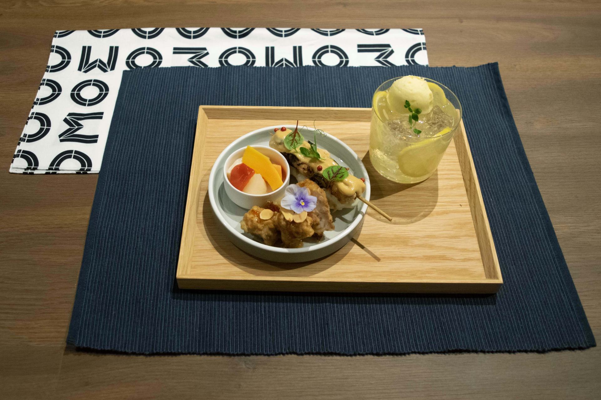 そんななか、OMOカフェ&バルでは夜限定メニューのおつまみプレートが登場する。創業70年以上の鶏肉専門店「信濃屋」とコラボしたおつまみプレートは、少しピリ辛の若鶏の唐揚げ、ねぎま串の焼き鳥、ピクルスという内容。OMOカフェ&バルでOMOオリジナルアルコールもいただきつつ、就寝前の夜のひとときを堪能してみては。