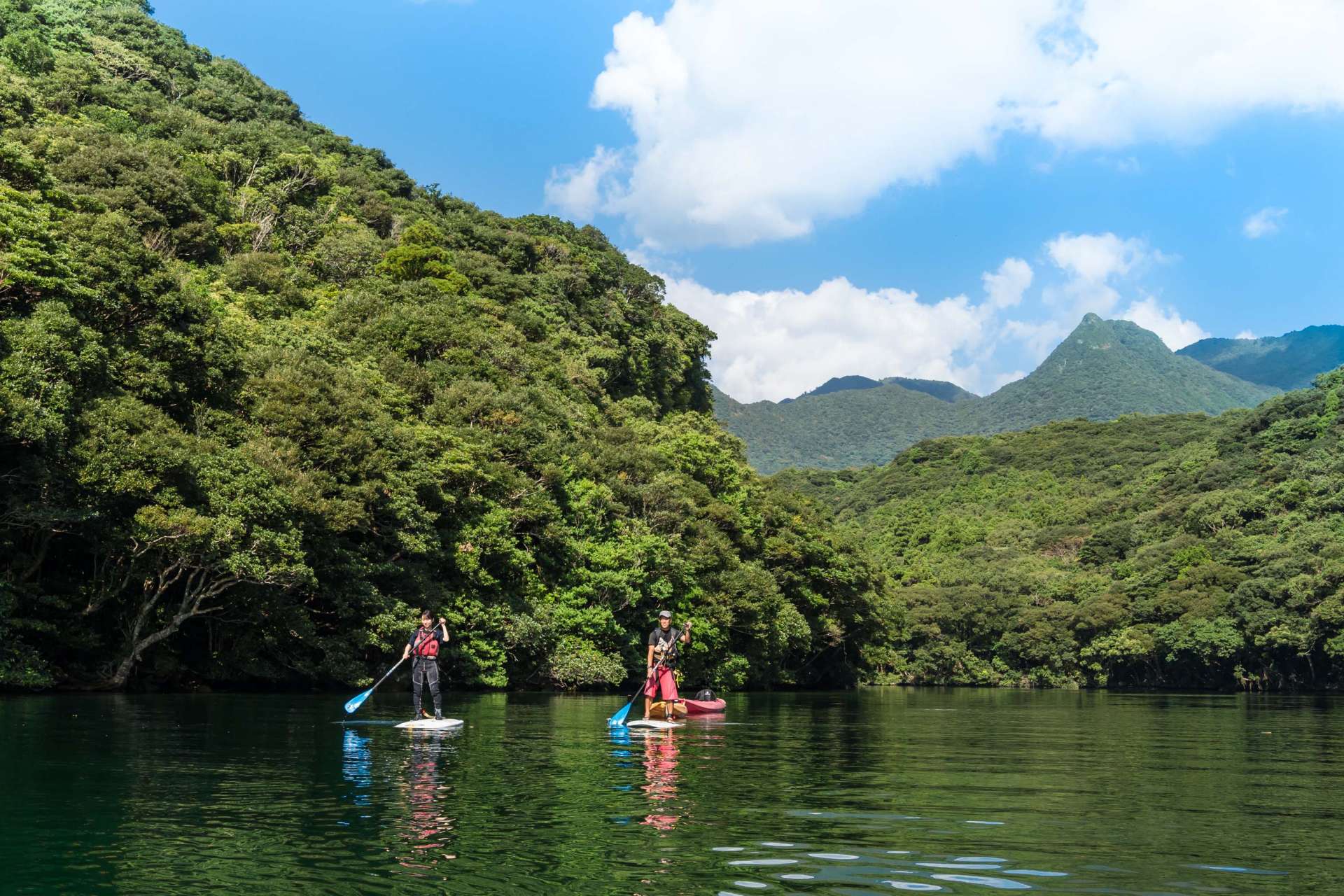 まるで周囲の森と一体化したかのような、深いエメラルドグリーンが広がる屋久島の川。そんな美しい川に浮かんでリラックスできるのが、リバーカヤック&SUPツアー。島の東部を流れる安房川から出発し、ゆっくりとパドルを漕ぎながら照葉樹林の森を進んで行きます。