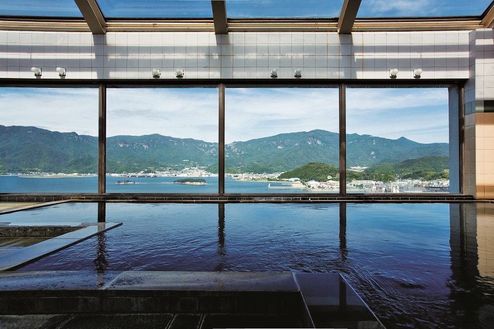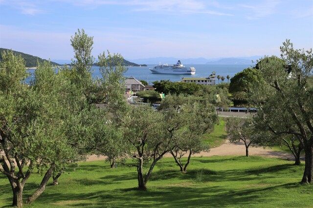 「ベイリゾートホテル小豆島」は、坂手港から車で約5分、前日の18時までに予約をすれば各港からも無料送迎バスが利用できます(送迎バス時刻表はホテル公式サイトにてご確認ください)。瀬戸内海が一望できる展望大浴場、絶景を眺めつつ湯浴みができる露天風呂のほか、島で唯一貸切風呂があるのもうれしいポイントです。全室オーシャンビューの客室も洋室、和洋室、和室など多彩なラインアップ。瀬戸内の新鮮な魚介や島の名産をふんだんに使った食事も人気。会席料理やオリーブバイキングなどから選ぶことができます。夏季には宿泊者は無料で利用できるプールも併設されており、リゾート感満載です。