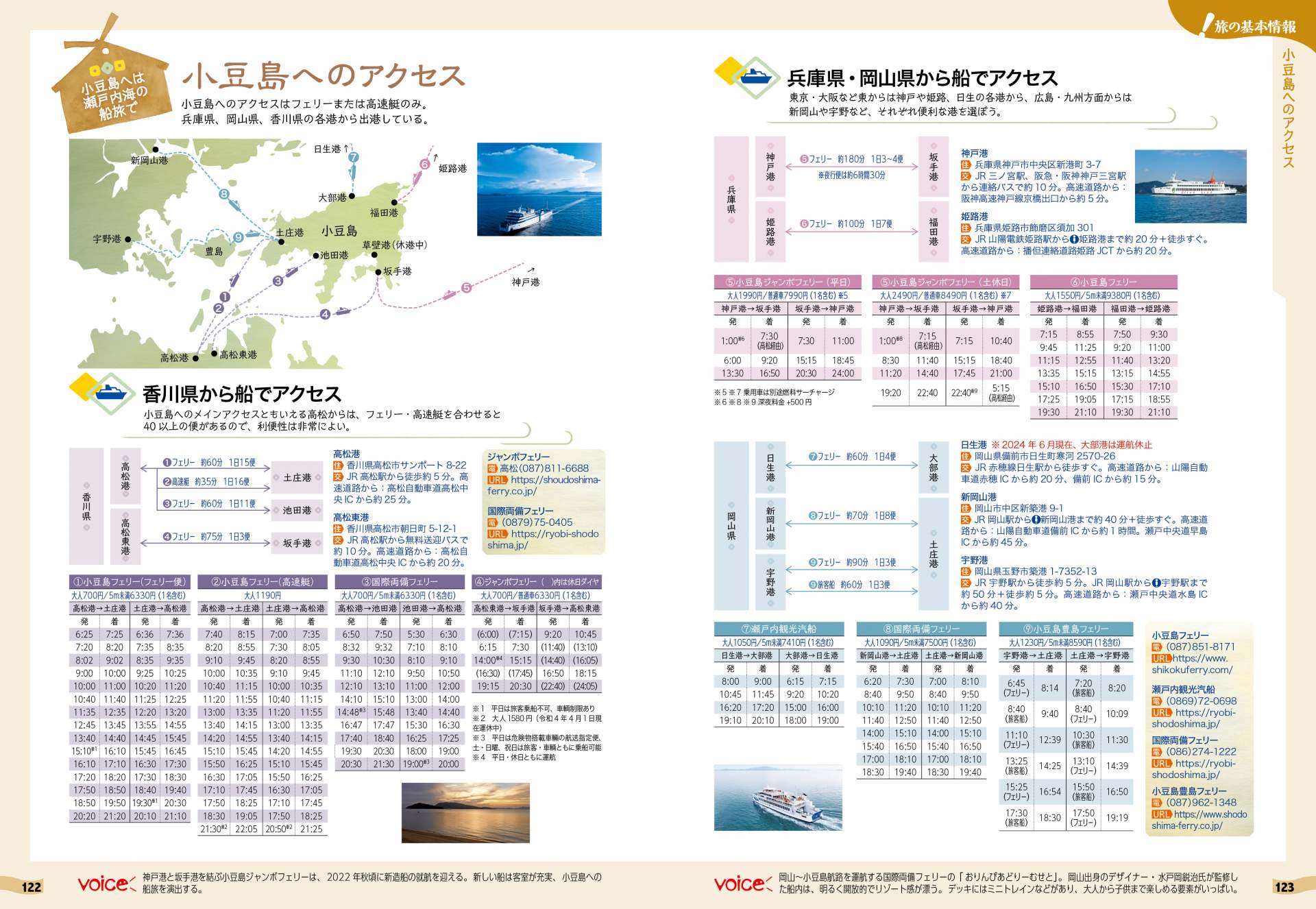 小豆島へは、フェリーまたは高速艇で行くことができます。