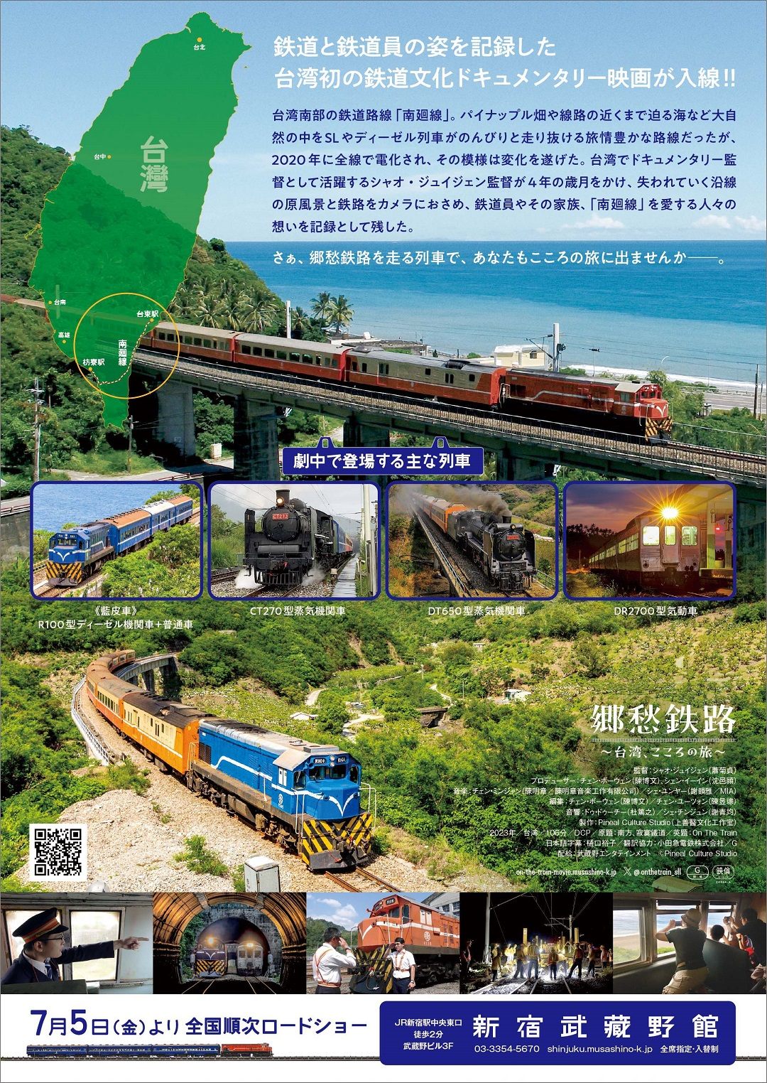 台湾南部を走る絶景の鉄道路線「南廻線」。枋寮駅から台東駅まで97.15キロメートルの区間を、SLや青いディーゼル列車が走る旅情豊かな路線が、2020年に全線で電化。電化によって変わりゆくこの鉄道路線と関わる人々の姿を記録したドキュメンタリー映画が、2024年07月05日(金)より「新宿武蔵野館」を皮切りに全国順次公開。