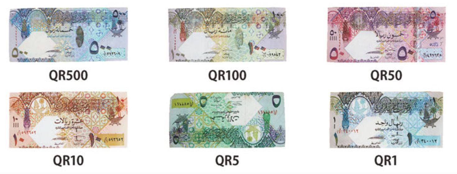 通貨単位はカタール・リヤルQR(Qatar Riyal)とディルハムDh(Dirhams)。紙幣はQR500、QR100、QR50、R10、QR5、QR1。硬貨は50Dh、25Dh、10Dh、5Dh、1Dhとあるが、ほどんど流通していない。