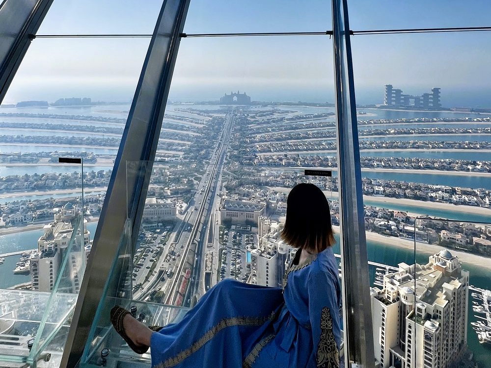 パーム・ジュメイラの全貌を一望できる唯一無二の絶景スポットが、2021年にオープンした複合施設「ザ・パーム・タワー」。54階建ての最上階にある展望台「ザ・ビュー・アット・ザ・パーム」ではパーム・ジュメイラやドバイの摩天楼を始め360度の絶景を堪能できます。
