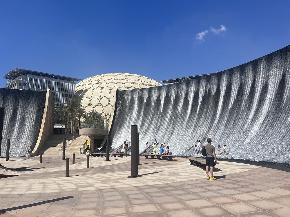 エキスポ・シティを象徴する美しい巨大ドーム「アル・ワスル・プラザ」には、万博当時と同様にプロジェクションマッピングアートが映し出され、360度の壁面から水が滝のように流れ落ちるアート作品「サーリアル」は、実際に足を踏み入れることもでき、音楽に合わせて降り注ぐ美しい噴水ショーを楽しめます。